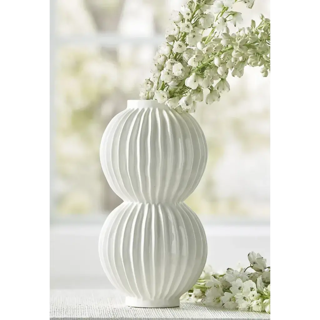 This Two Tiered White Ceramic Vase Has A Sense Of Organic Movement. Beautiful With Or Without Flowers. Designed By Bradshaw Orrell.