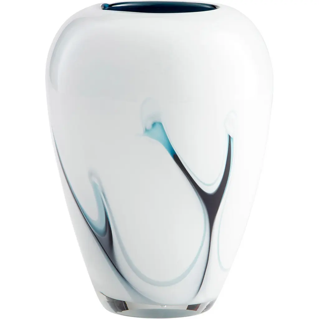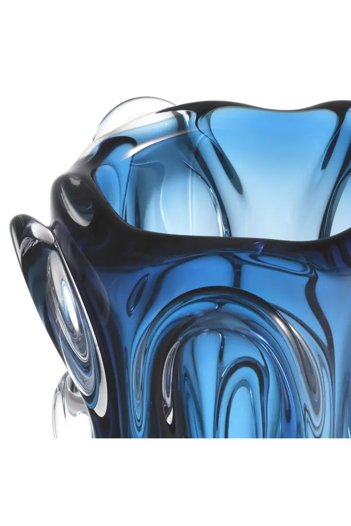 Handblown from blue glass and embellished with arc-shaped decorations, Vase Aila is a perfect fit for a coffee table, console or empty shelf in your home. With its interesting silhouette and vibrant color, this artistic vase will instantly elevate the space.