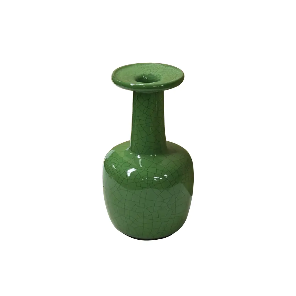 Orient Crackle Pattern Verdant Green Color Pottery Ceramic Vase