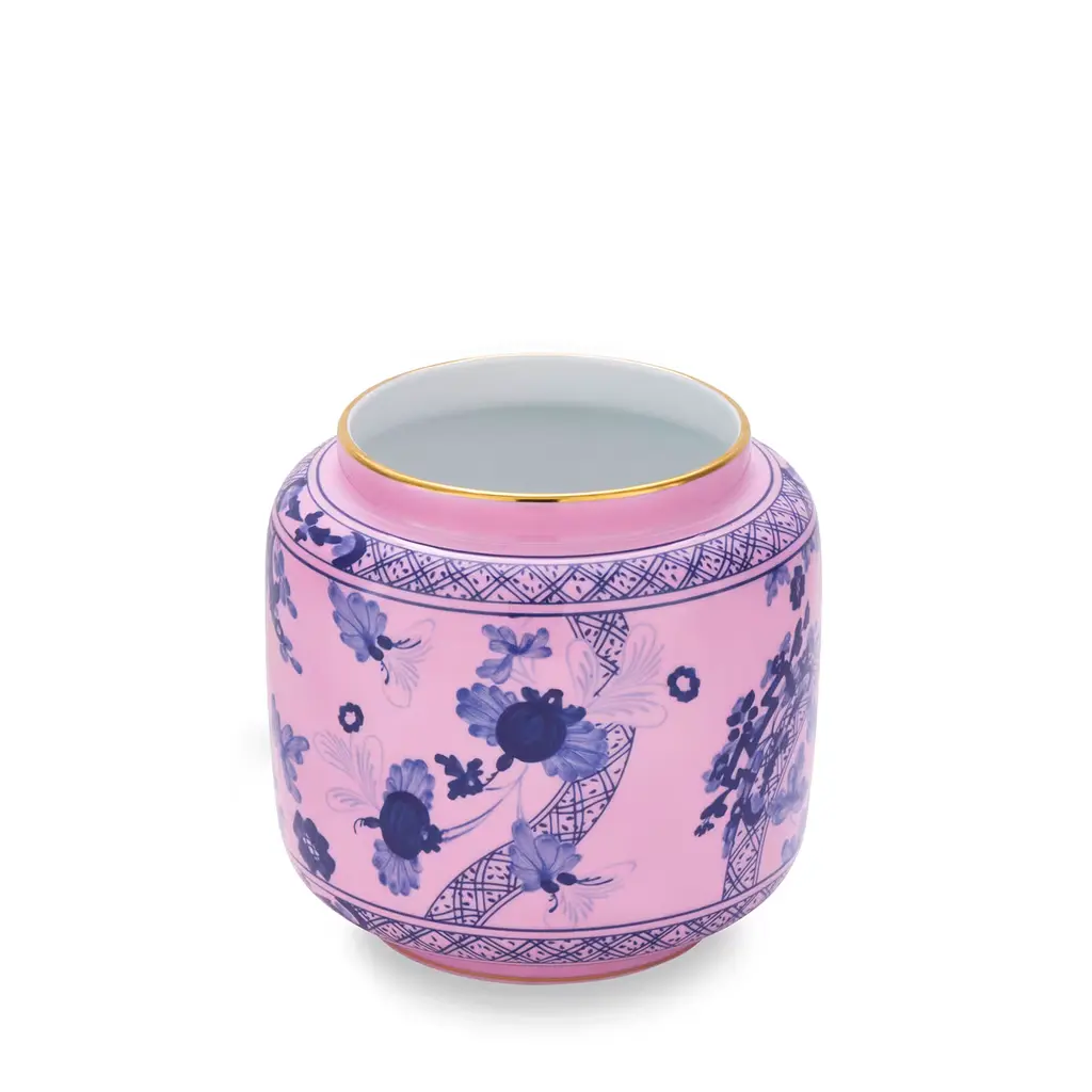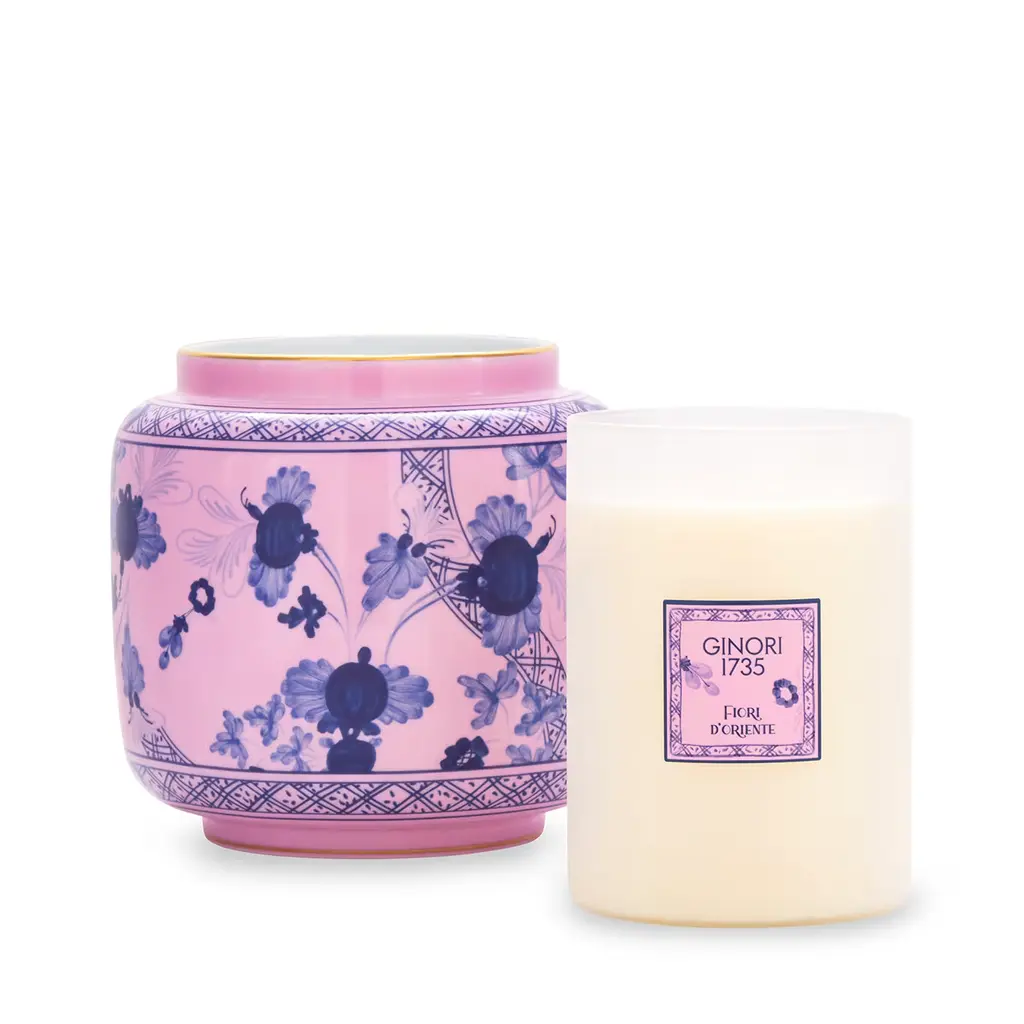 Add a unique touch to any room with the Azalea pink porcelain candleholder vase, featuring refined details and delicate gold trim. This elegant piece pairs beautifully with the Fiori d’Oriente scented candle, blending floral and woody notes of bergamot, sandalwood, rose, and jasmine. Perfectly harmonizing with almost any piece in the Oriente Italiano home décor line. Candle not included.