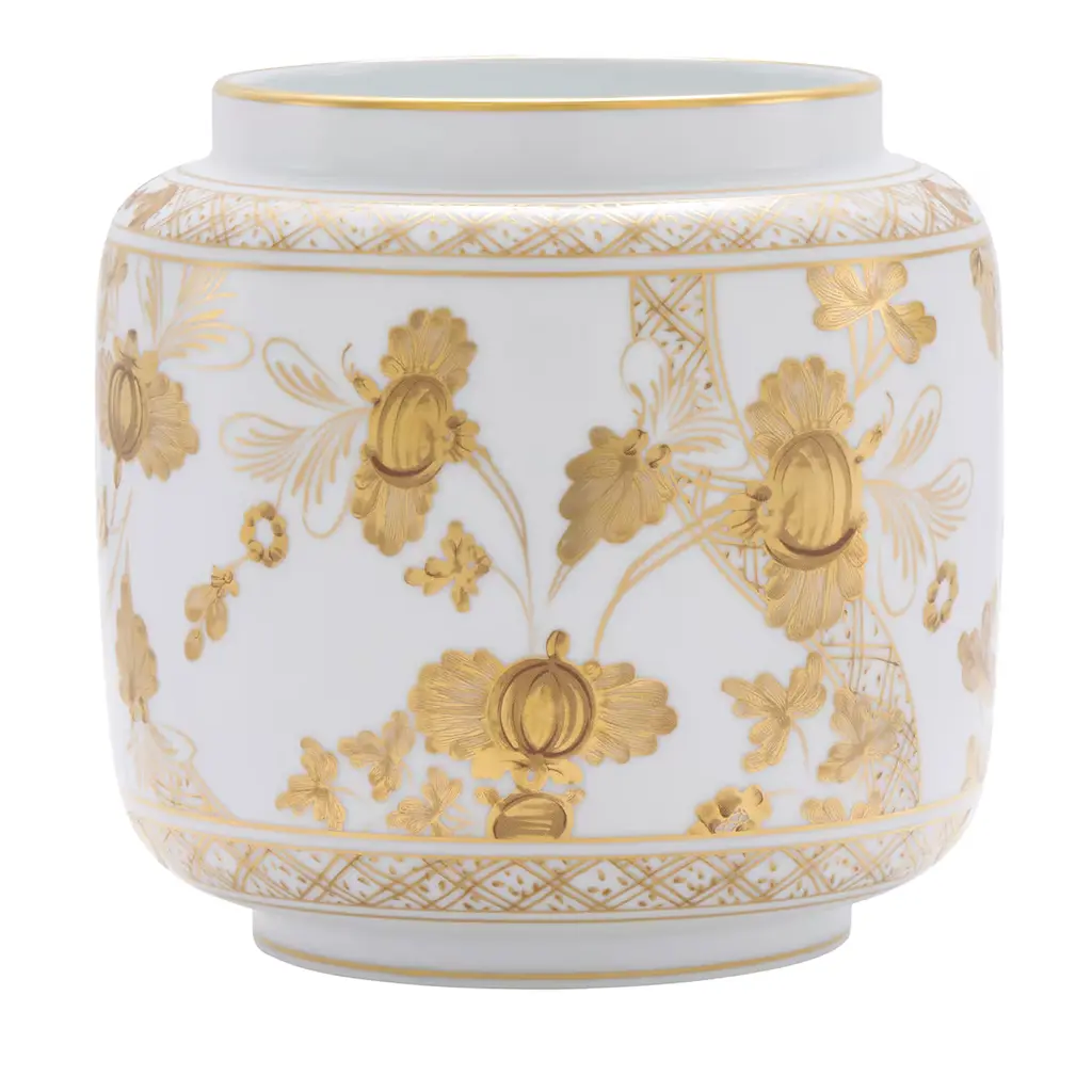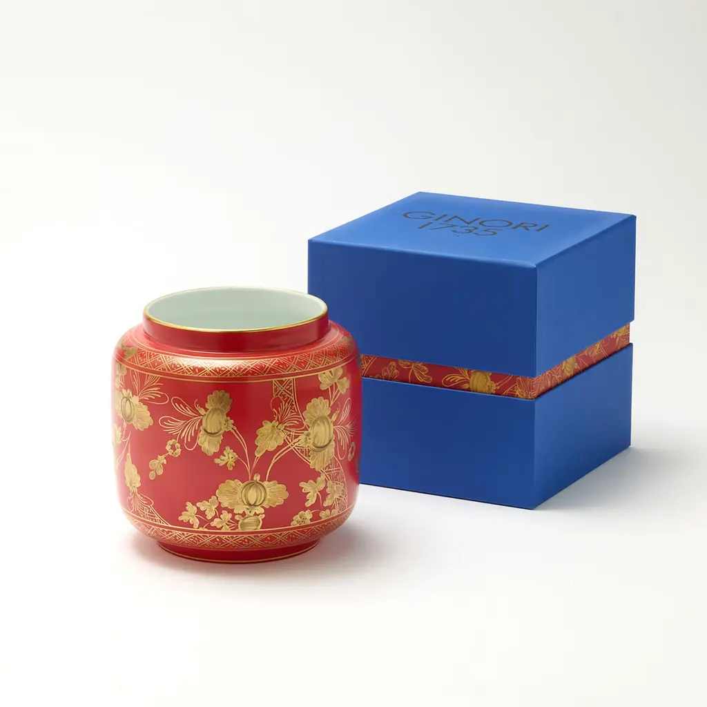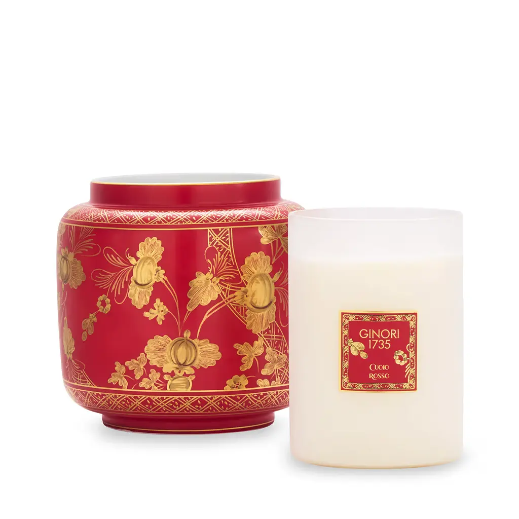The iconic Garofano (Carnation) in the Rubrum pattern with floral motif is elegantly rendered in gold. This design traces the classic lines of Ginori 1735, evoking magical atmospheres through the expertise of Florentine craftsmanship. The candle holder’s design allows for versatile ton sur ton combinations. It is intended to pair with the Cuoio Rosso fragrance candle, which features fruity-woody notes, adding depth and character to any room. Candle not included.