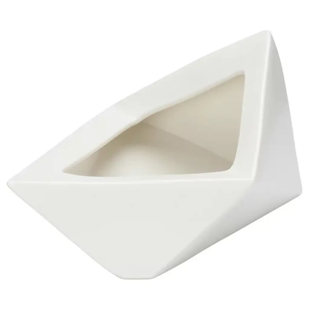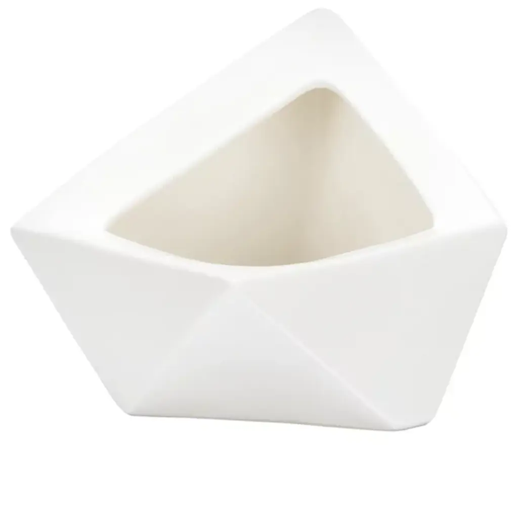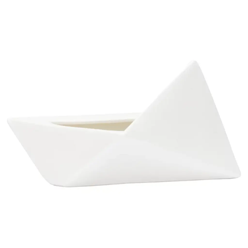 The Origami Vase from Wildwood folds ceramic into sharp angular planes that mimic paper sculpture techniques. Crisp edges and faceted surfaces create geometric shadows that shift with changing light throughout the day. Japanese ceramic traditions inform the construction methods, while the folded form references the ancient art of paper folding. Each crease appears precisely calculated, transforming clay into something that seems impossibly light despite its ceramic weight. The vessel's angular opening accommodates floral arrangements while maintaining its sculptural integrity when displayed empty.