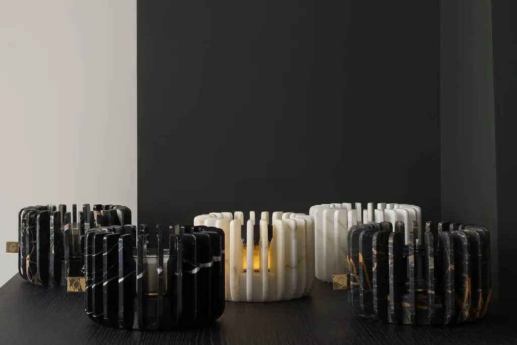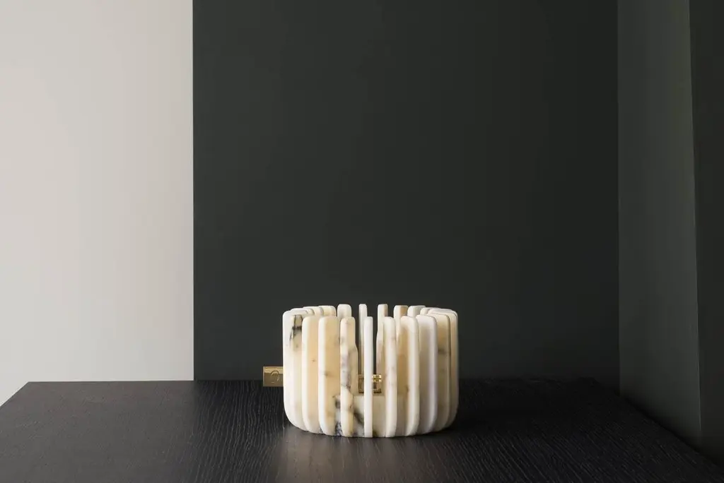 Orion opens new perspectives with the use of marble.With mechanical-like harmony , its delicate fins are meticulously set around a central element.Their shape highlights the fragility of the material and creates a subtle constrast of light and shadows around the object.When viewed from above, Orion has the appearance of a celestial body surrounded by marble rays.