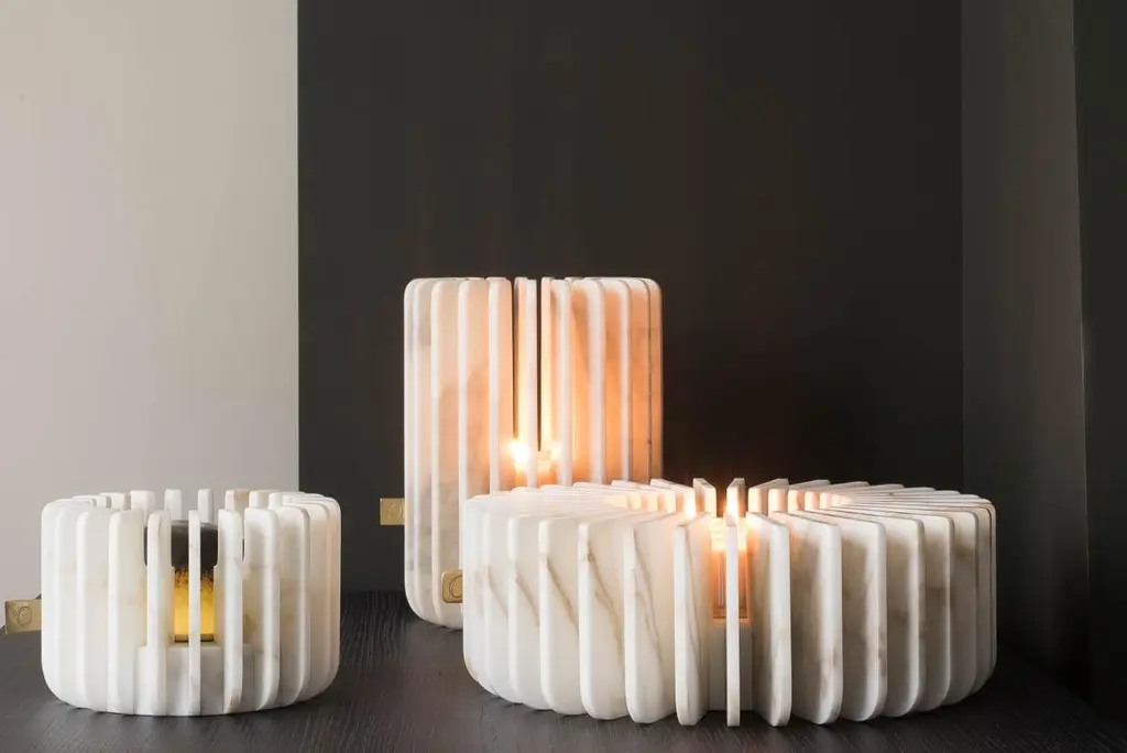 Orion opens new perspectives with the use of marble.With mechanical-like harmony , its delicate fins are meticulously set around a central element.Their shape highlights the fragility of the material and creates a subtle constrast of light and shadows around the object.When viewed from above, Orion has the appearance of a celestial body surrounded by marble rays.