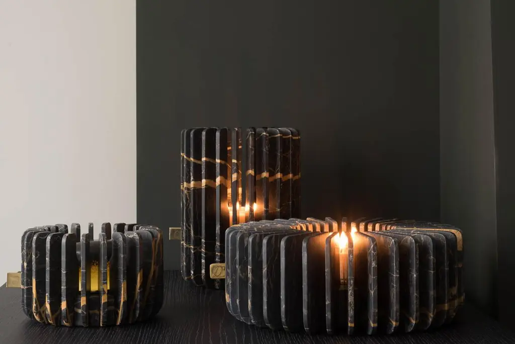 Orion opens new perspectives with the use of marble.With mechanical-like harmony , its delicate fins are meticulously set around a central element.Their shape highlights the fragility of the material and creates a subtle constrast of light and shadows around the object.When viewed from above, Orion has the appearance of a celestial body surrounded by marble rays.