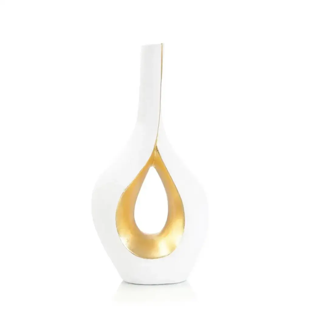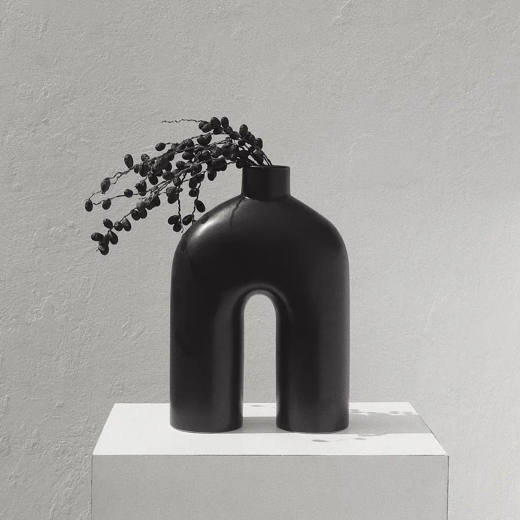 Its modern inverted U-shaped design. Great for holding fresh or dried flowers alike. Narrow neck lets you easily style branches and long stems.