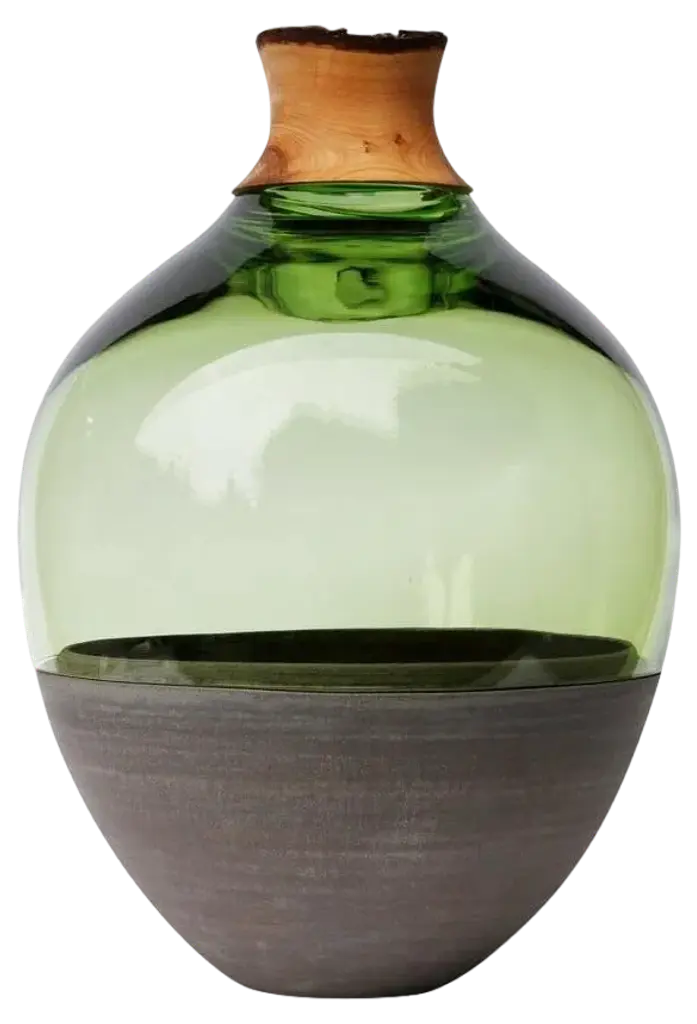 Ott another paradigmatic handmade ceramic vase by Studio Yoon Seok-hyeonDimensions: W 30 x H 30Materials: Ott(Natural resin from Ott tree), porcelain2.5kgIt is available to customize various colors in Ott's natural color range(brownish, yellowish to black)and to proceed with commissioned works.Glazed ceramic pieces are not recyclable for their re-production and they mostly end up in a landfill.In this process, various ground pollutions are caused by chemical and toxic particles resulting fromsome glazings. “It’s a shame that clay, one of the most natural materials, is treated in this way”. saysSeok-hyeon Yoon. Technically, the clay itself is reusable as chamotte, powder of baked clay. Glassyingredients of glazing complicate ceramic recycling. Because when they are baked as one, they fusetogether. Then the earth is not pure anymore.He thought if he can get pure earth again from recycling systems such as those of glass and plastic,the earth might be reused through re-production. So, he searched for alternative glazings and foundout “Ott” known as Korean traditional lacquering material. It’s a natural resin from the Ott tree and waswidely used as glazing for woodenware in the past.To glaze Ott on the ceramic surface, it doesn’t need to be baked as it just drys out. And he discoveredan interesting fact that it evaporates when it’s heated with the high temperature in kilns.It means that we can get clean earth again and reutilize it.This project aims for actualizing ceramic recycling for its re-production through introducing potentials of alternative glazing, Ott, by applying it on domestic ceramic objects to experiment with its practicalities and aesthetics.This handmade product’s Ott lacquer is a natural resin derived from trees. Therefore, it can beirregular in shape, color, and finishing.Natural Ott is waterproof, stain-free, and antiseptic.Ott does not absorb residues so that it is sanitary.To avoid discoloration, remove moisture thoroughly after dishwashing.This product used natural Ott as an alternative glazing.It does not have a negative impact on environments when decomposed. And Ott helps the raw ceramic materials to be recycled as chamotte.This product is consumable, and Ott is not 100% scratch-proof. So, frequent frictions may shortenits service life. Please do not cut food on this product. Also, avoid fire or boiling.Seok-hyeon YoonI enjoy revaluing materials and objects which are always around us.Surroundings of everyday life often become a starting point for my design projects. I observeand analyze them and then try to link them to design, environment, society, and industry.My interest in projects is the materiality and socio-cultural value of design objects. With thisinterest, each of my projects reflects undiscovered stories of human life. As a designer, I interpret them with my own perspective and create objects to support andenhance our everyday life.My design process follows concept arrangement based on exploring a subject, in-depth researchfor materiality and contexts, hands-on practice such as drawing and model making and production.
