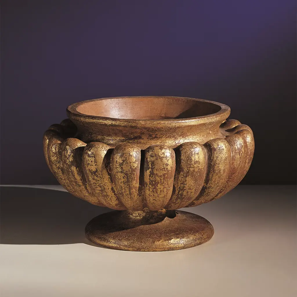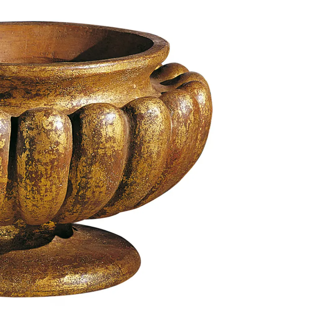 Deeply rooted in tradition, this precious terracotta vase is a testament to Florentine artisan mastery, perfect for complementing classic-style settings. A scratch-effect golden decoration brightens the exterior, where generous channeled detailing maximizes the vase's bold elegance. Multiple finishing options are available, please contact the Concierge for further details.