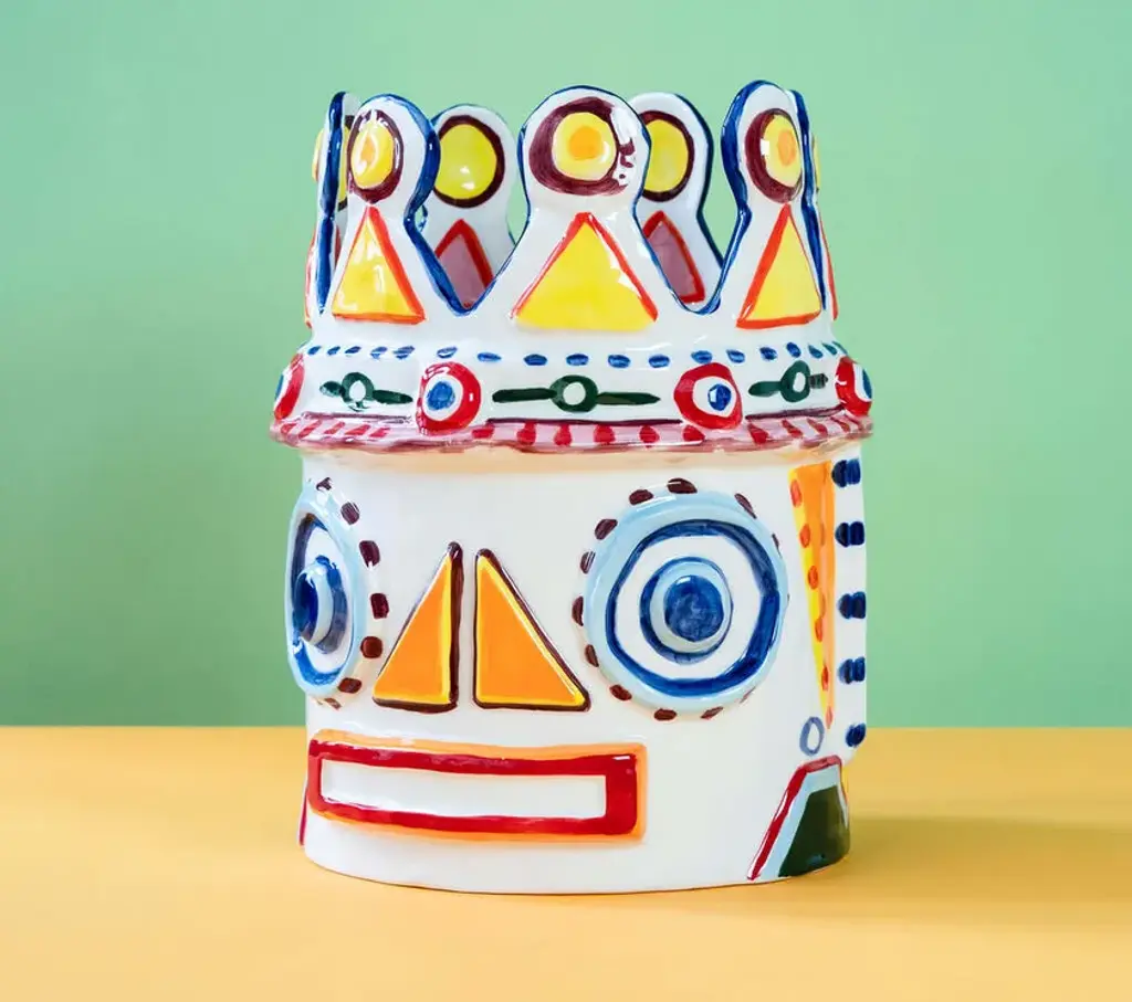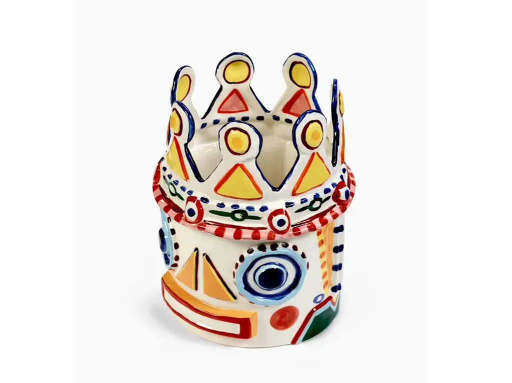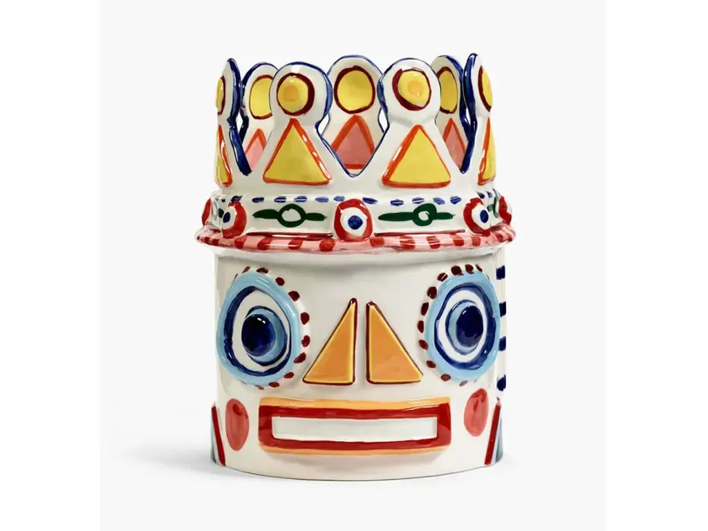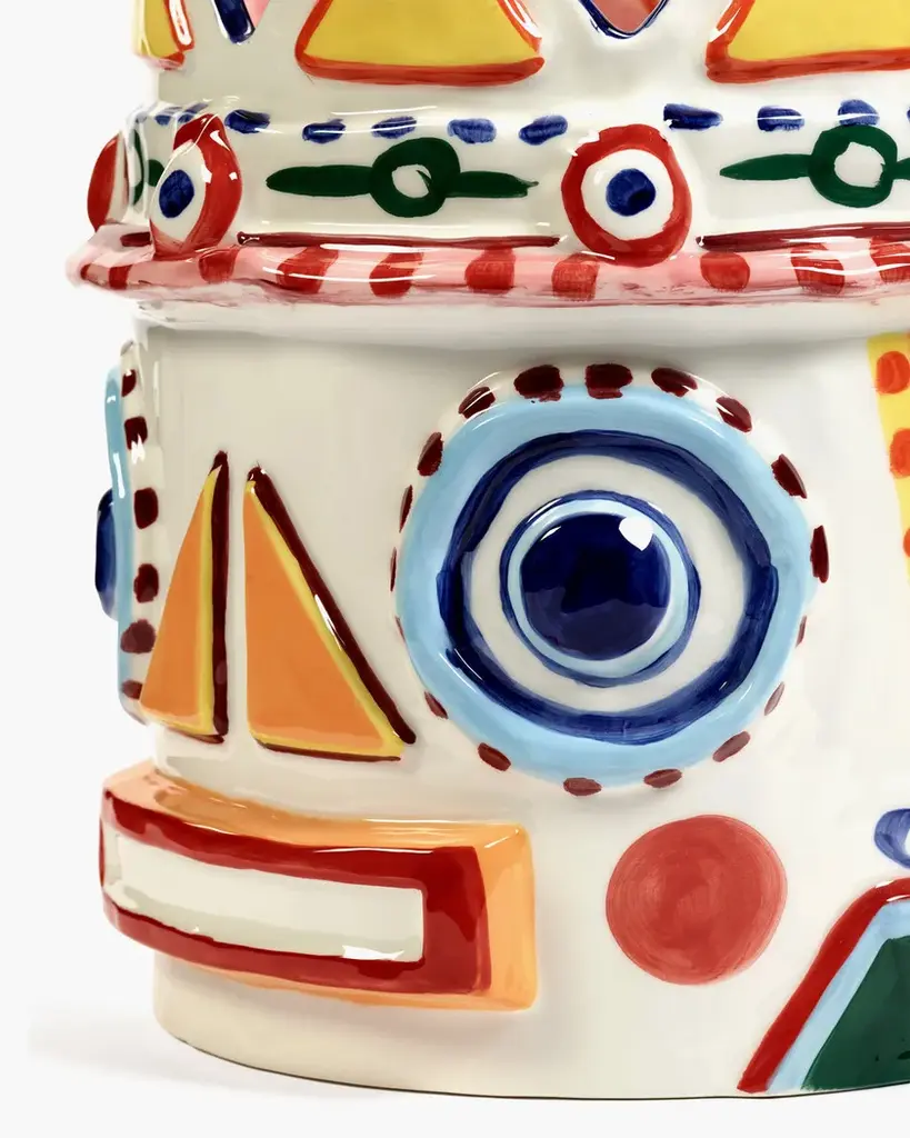 Sicily is a vase made of stoneware.These Sicily vases are based on a Sicilian legend. Designer Bisignano gave them a slightly surreal twist. These vases are honest, expressive, striking, cheerful and colorful. The Sicily vases in hand-painted stoneware grasp Ottolenghi's exuberant way of cooking and are simultaneously an ode to the sun, the colors and the passion of Bisignano's birthplace. The vases are available in four different models.The creative collaboration between celebrated chef Yotam Ottolenghi and his good friend, artist Ivo Bisignano, led this time to four exuberant hand-painted ceramic vases. With the Sicily vase collection, they journey from the table to the outside. ‘In Sicily, where I grew up, you eat at the kitchen table while enjoying the view of the colourful balconies with their magnificent flowers’, says Ivo Bisignano. Sicily captures Ottolenghi’s exuberant cooking style and is simultaneously an ode to the sun, colours and passion of Bisignano’s birthplace.