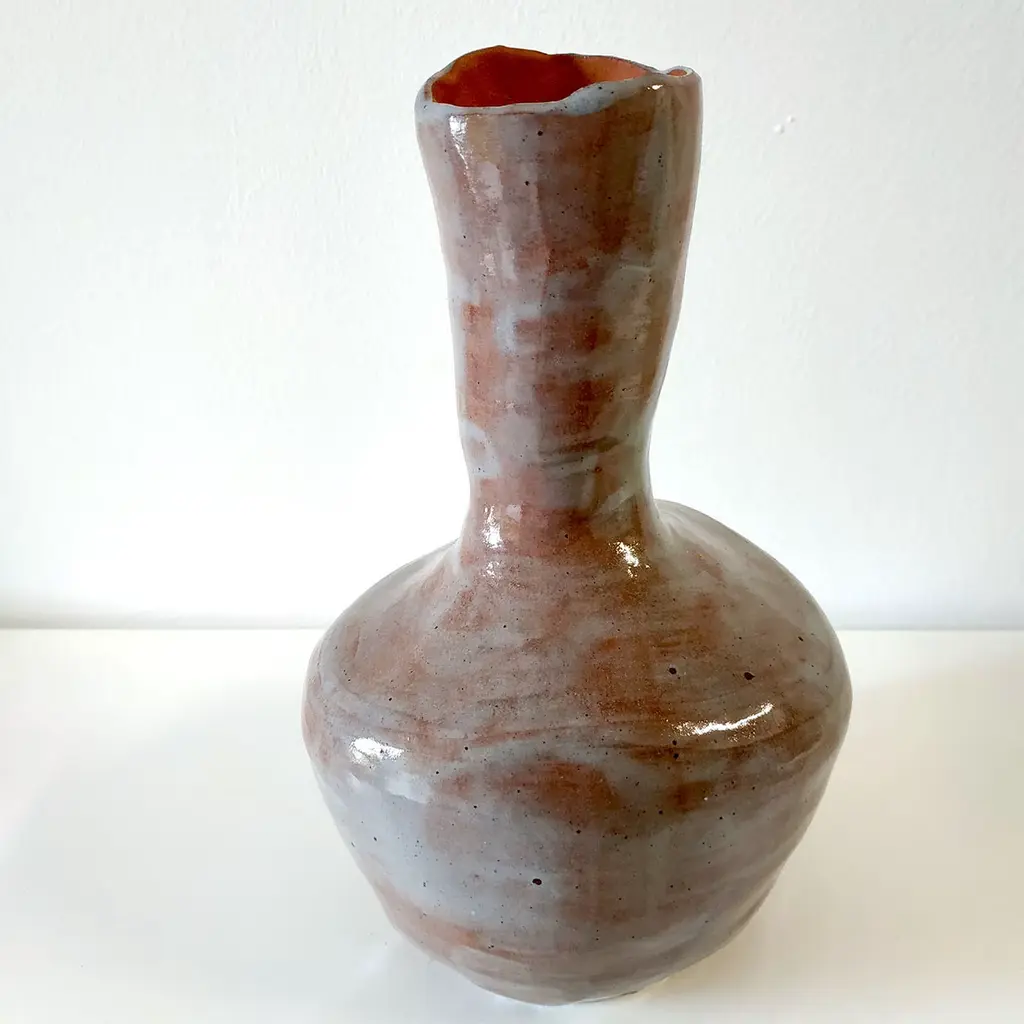 Minutely handmade by ceramist Cristina Cavallari with red clay, and finished with a semi-polished gray enamel, this spectacular vase will make for a singular accent to a contemporary interior, ideally combined with others by the same artist, for a distinctive and precious set of handcrafted art pieces.