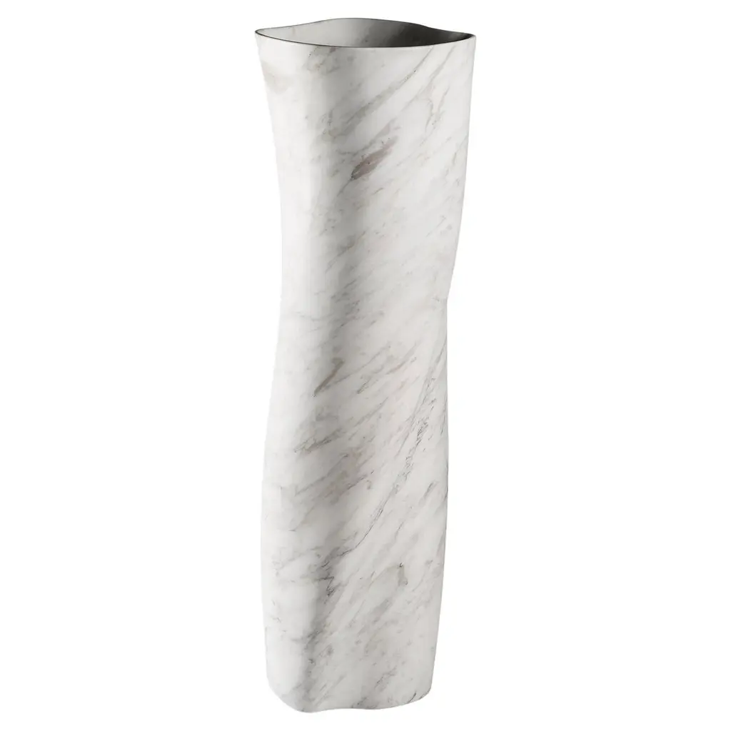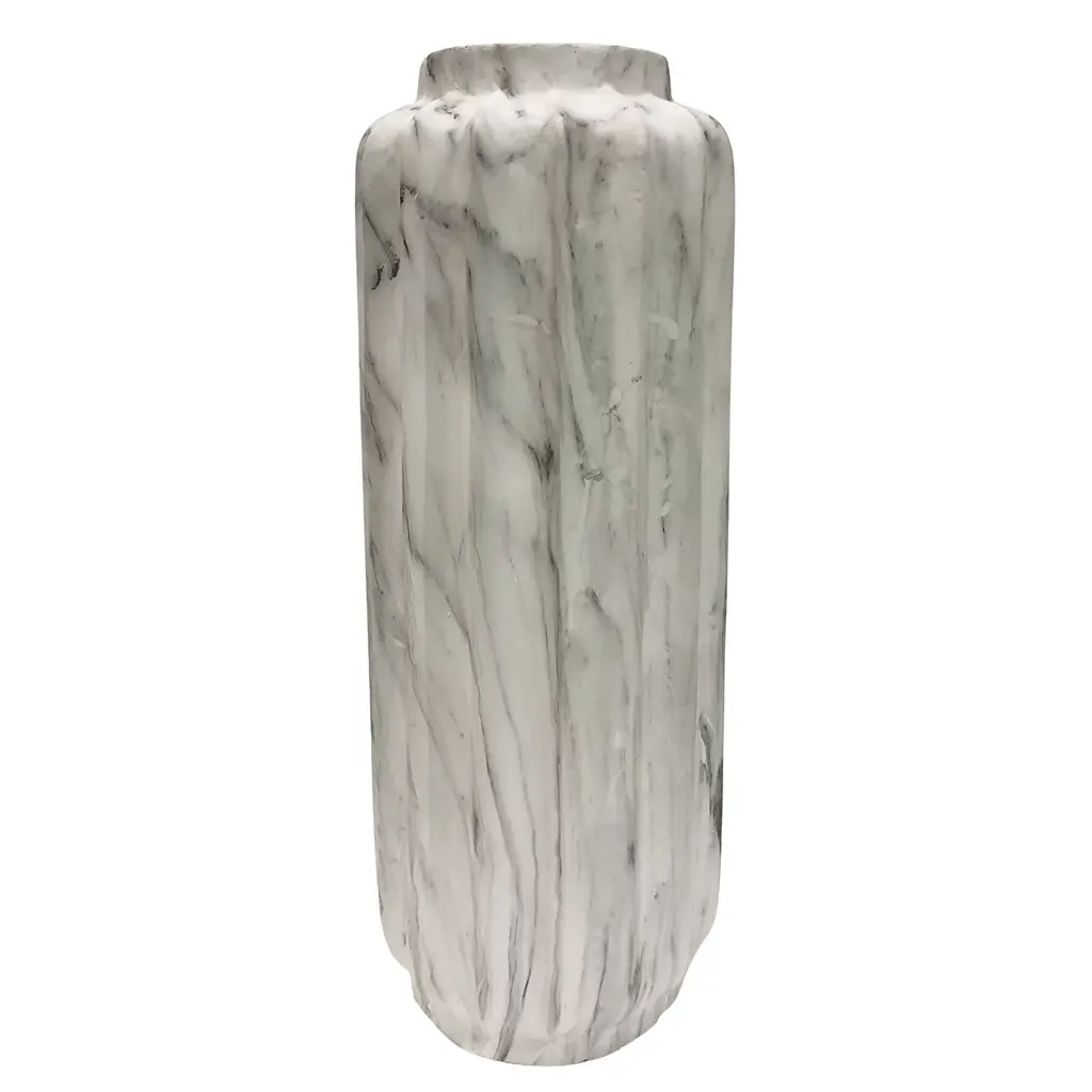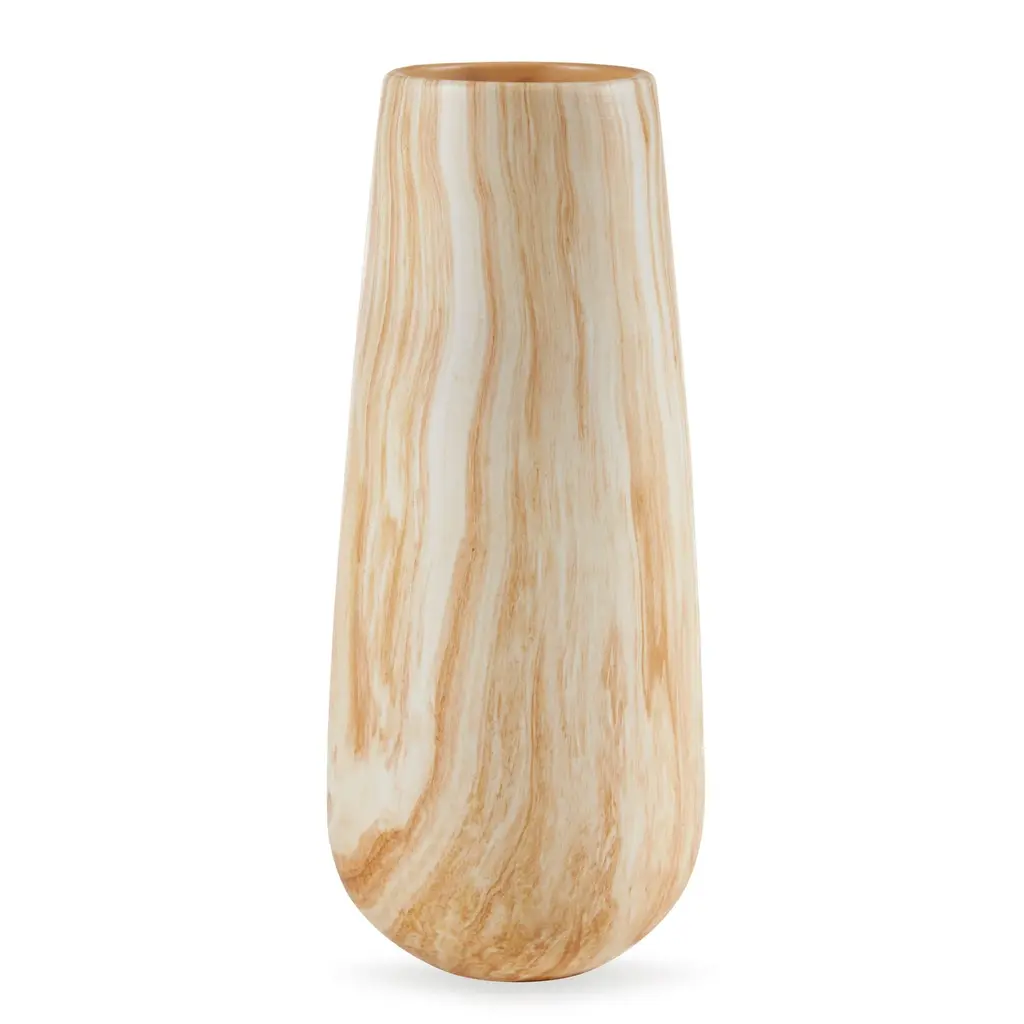 OYSTER SWIRL VASE IS A LARGE ENAMELED VASE THAT FEATURES AN EYE CATCHING GOLD AND WHITE ABSTRACT OMBRE DESIGN. PROVIDE CHARM IN ANY ROOM BY ADDING CHERRY BLOSSOMS, PUSSY WILLOW BRANCHES OR TALL FAUX FLOWERS.