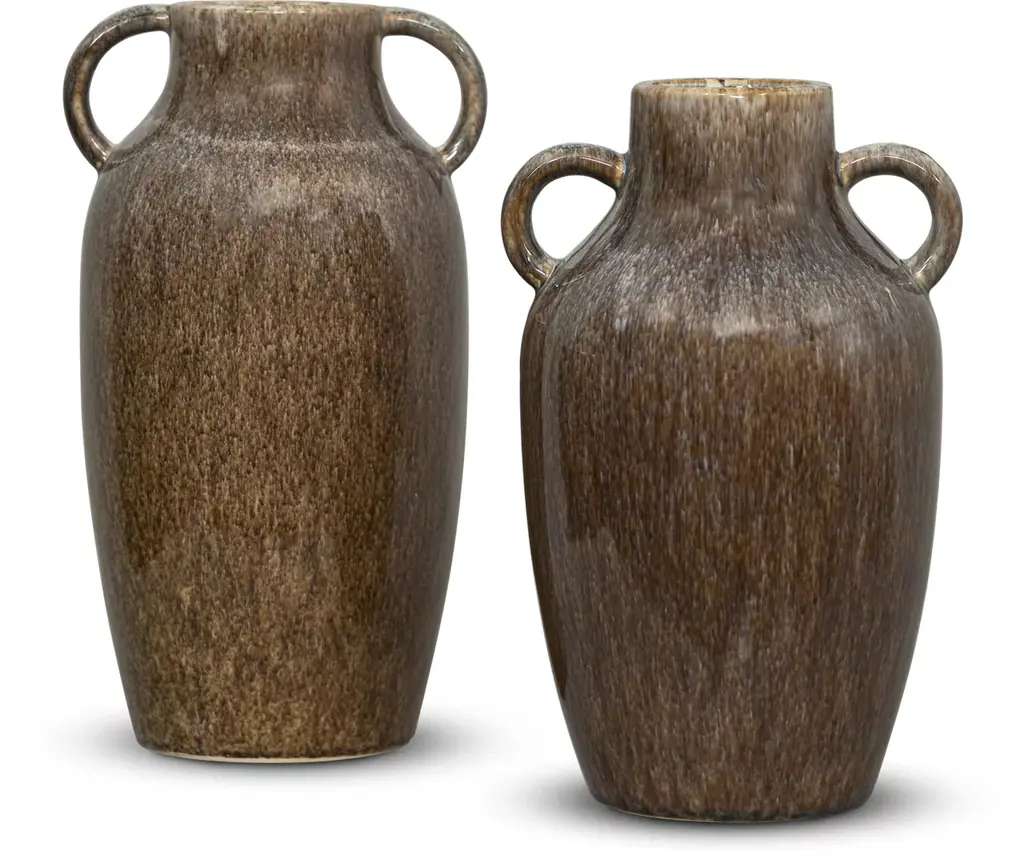 Add warmth and character to your space with our Pacheco jug vase. Crafted from ceramic with a rich brown reactive glaze, each vase features unique tonal variations that make it one of a kind. This piece is available in both a 12-inch and 13-inch height. Please select your size before adding to cart.