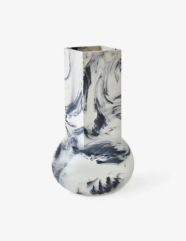 A marbled glaze and sculptural shape give this ceramic vase its artisan appeal. Each hand-finished piece brings a unique accent to your curation, just as striking with fresh stems as it is styled solo.