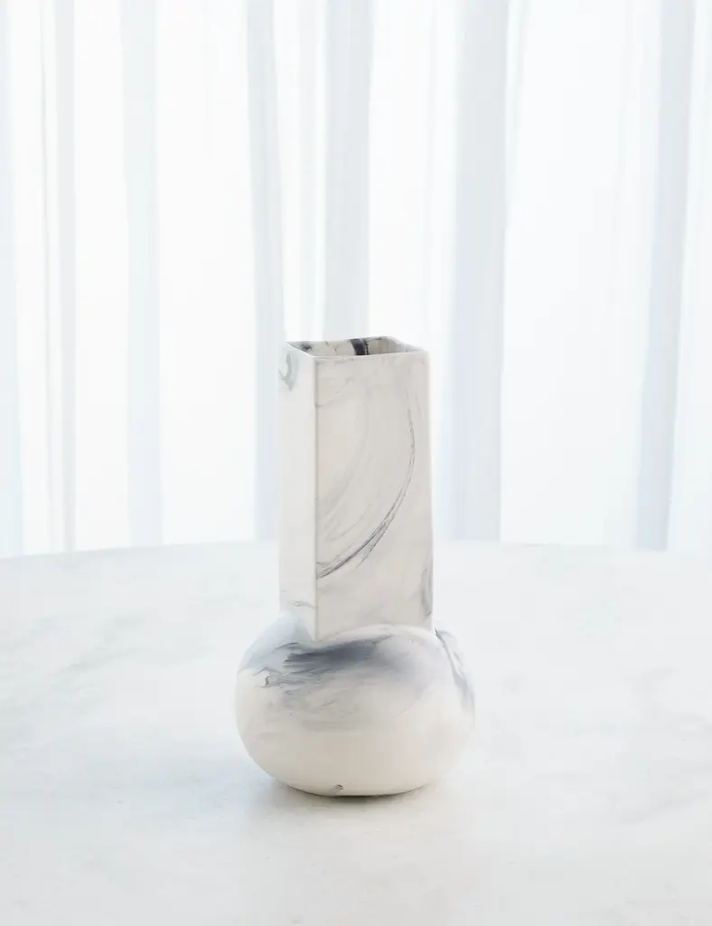 A marbled glaze and sculptural shape give this ceramic vase its artisan appeal. Each hand-finished piece brings a unique accent to your curation, just as striking with fresh stems as it is styled solo.