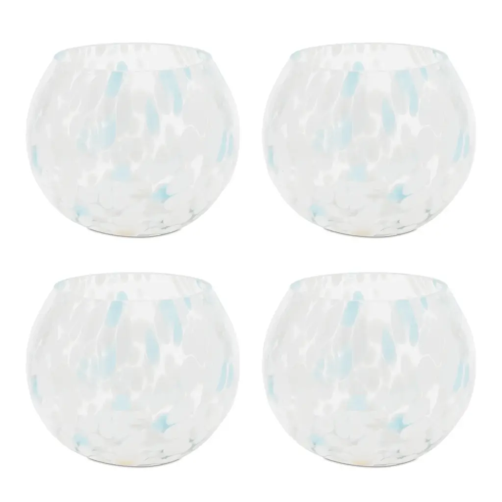 Add a fresh, coastal touch to your décor with the Painted Glass Candle Holder Vase Set. Featuring cool blue and white tones with an abstract painted design, these chic holders enhance your home with a modern feel. The clear finish offers a clean, elegant look, making them perfect for small votives or tealight candles, or even as vases to display a small bunch of fresh flower stems. Sold in a set of four, these versatile holders are a stylish addition to any space.