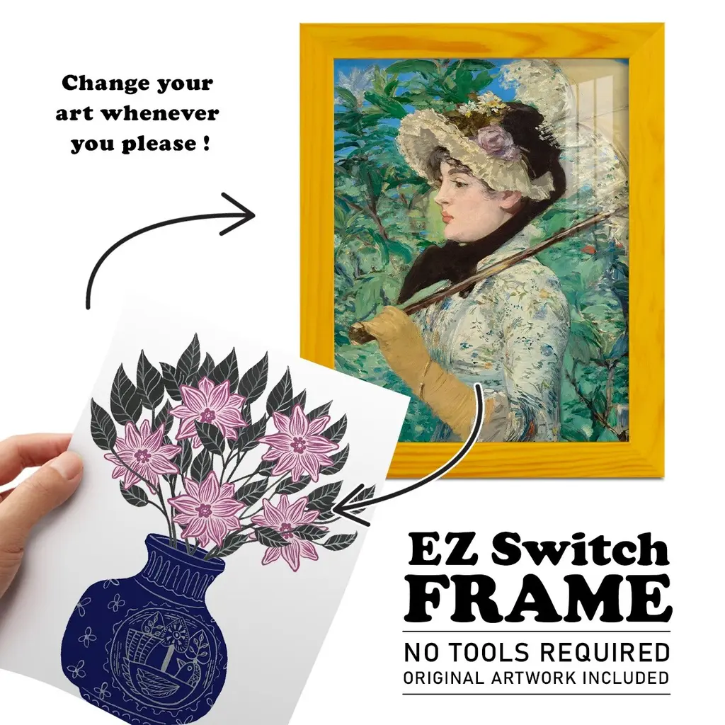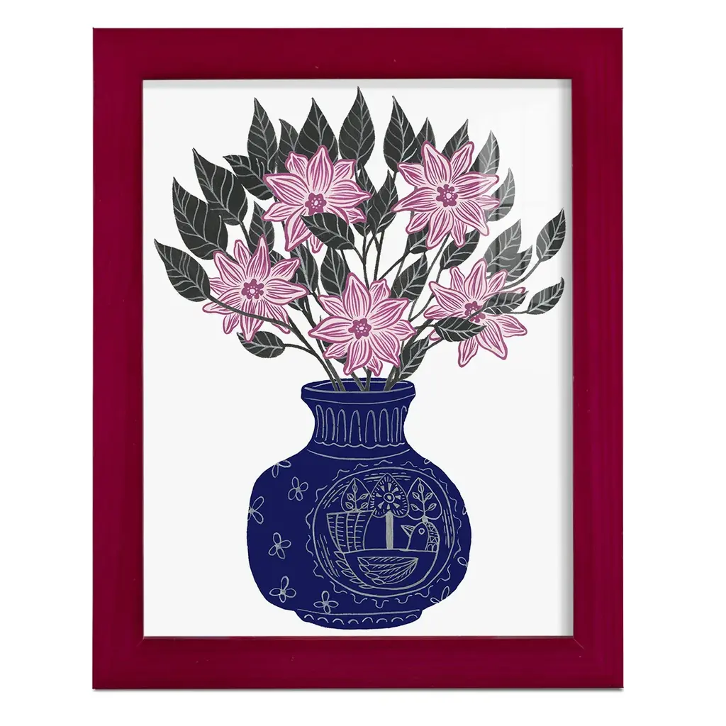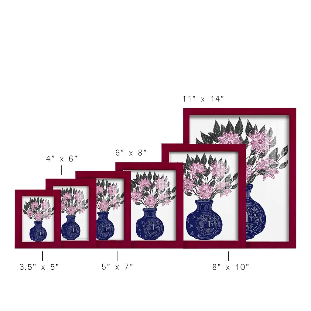 Painted Vase II -EZ SWITCH Framed Print w/glass-Cherry Red A delightful, framed print. Featuring a solid wood frame with real wood glass. This premium print is giclee quality. In addition, every frame features a removable back and table top stand. This allows you to change your art in the future or to just stand the art on a table for a new look. We are sure you'll enjoy our new series of EZ SWITCH Framed Art. Solid Wood Frame Real Glass Removable / Replaceable Art Built in Tabletop Stand Sizes range from 4x6 up to 12x15 - buy just one or pair them up as sets as you see fit.