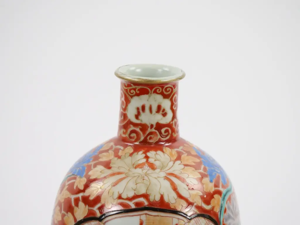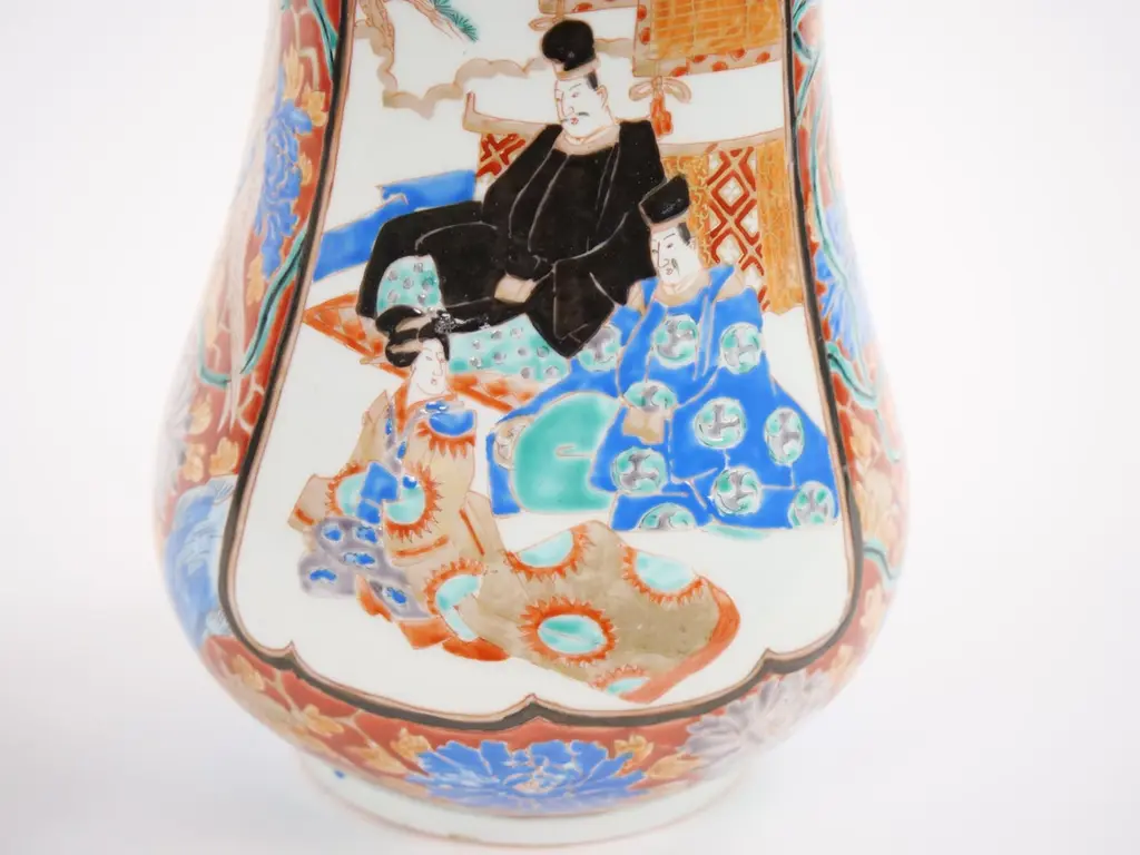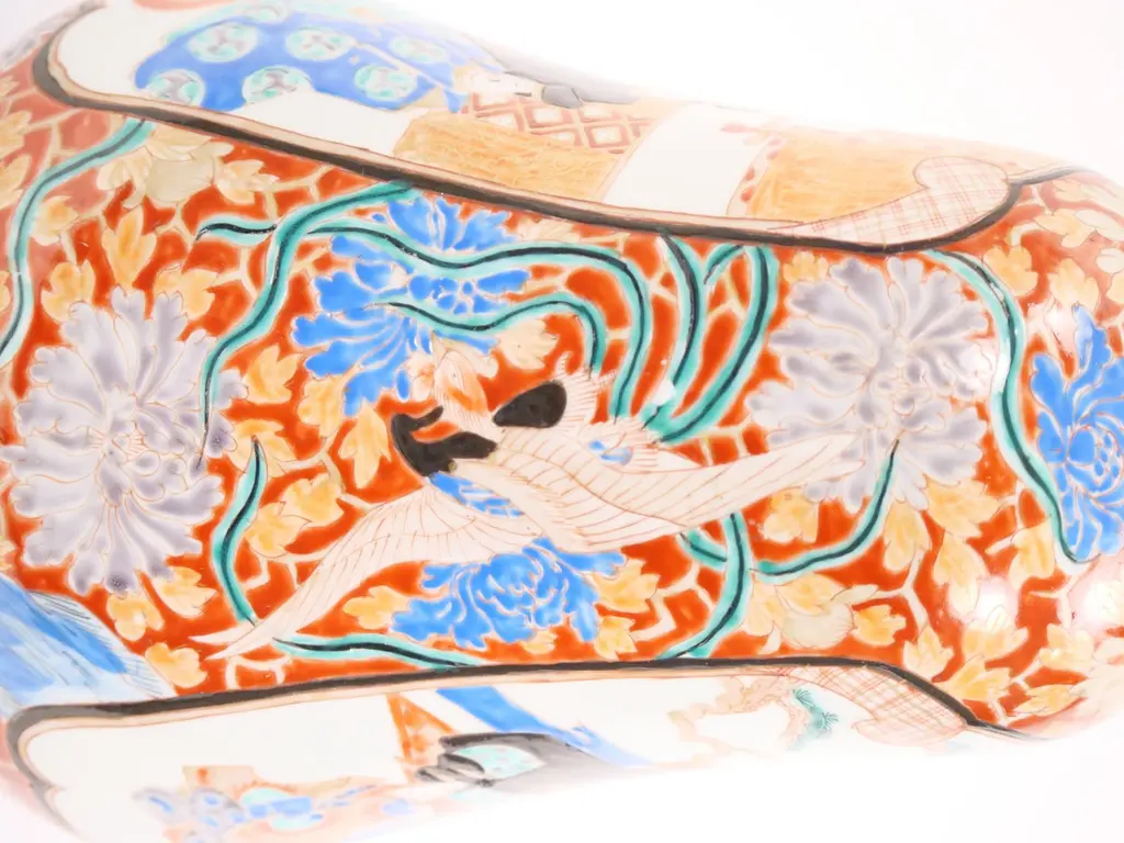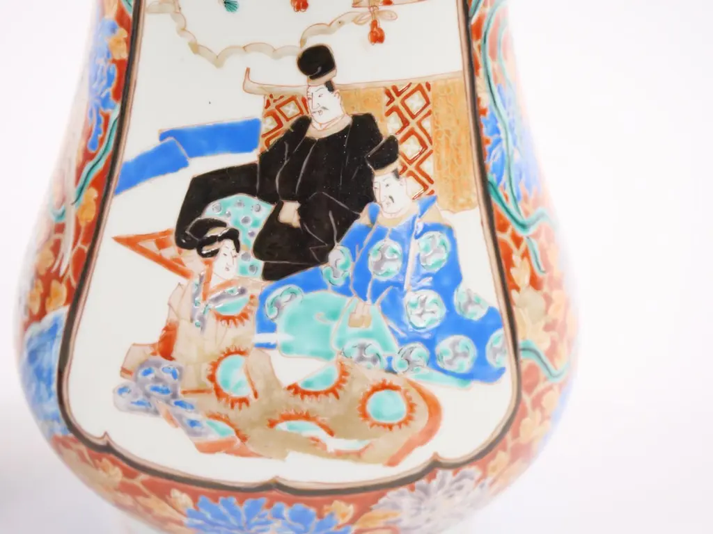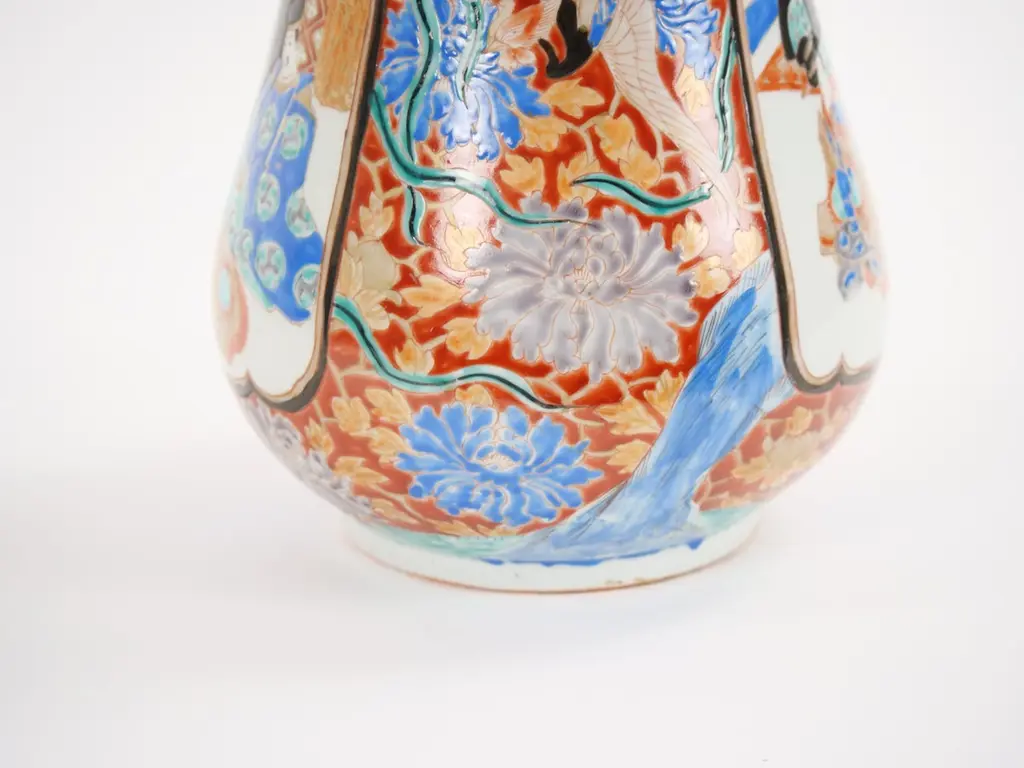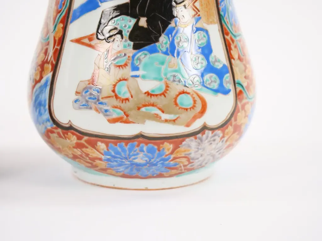 Experience the captivating charm of Japan with this pair of Imari gourd-shaped porcelain vases. These vases beautifully showcase the renowned Imari style, which has captured hearts around the world for its intricate patterns and vibrant color palette.Crafted with exceptional artistry, each vase resembles a graceful gourd, with its unique curves and contours adding to the visual appeal. The Imari patterns, characterized by rich cobalt blues, fiery reds, and brilliant gold accents, evoke a sense of Eastern elegance and cultural heritage.Imagine these vases adorning your space, becoming instant conversation pieces that encapsulate the beauty of Japanese craftsmanship. The harmonious blend of traditional forms and ornate designs creates an aesthetic that is both timeless and captivating.Whether displayed as a pair or showcased individually, these Imari porcelain vases transport you to a world where art and culture converge. Let their presence infuse your environment with the mystique of the Orient, celebrating the enduring appeal of Japanese porcelain and design.