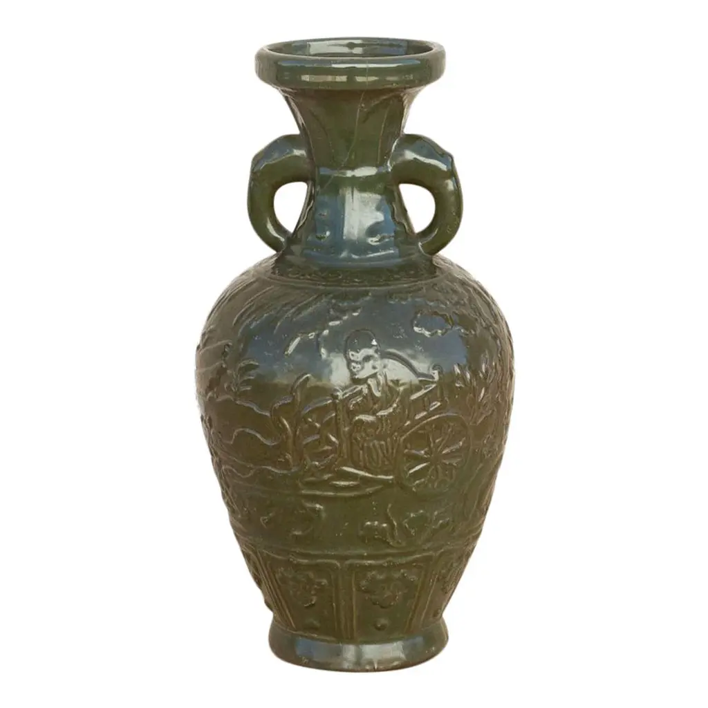 Pair Of 20th Century Chinese Carved Bowenite Lidded Urns.