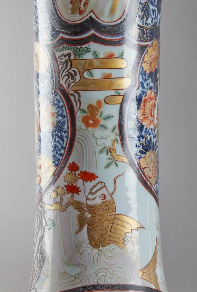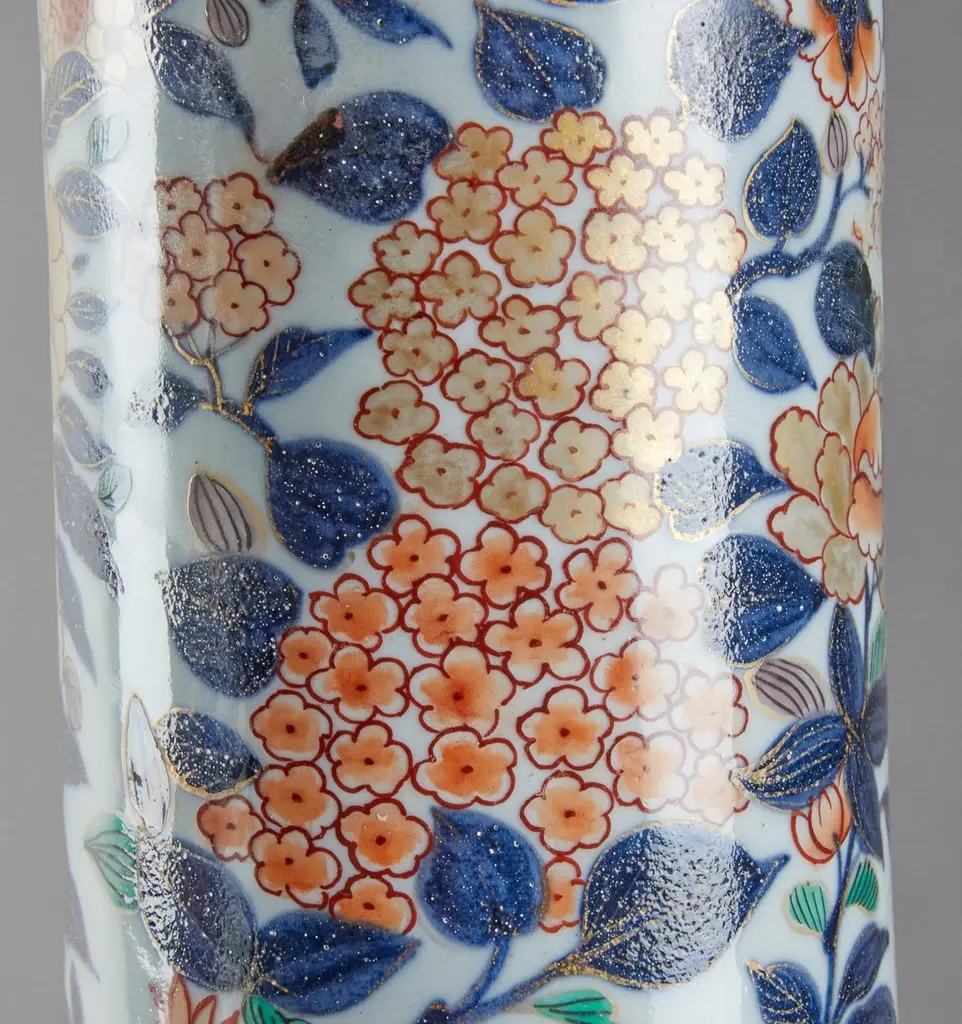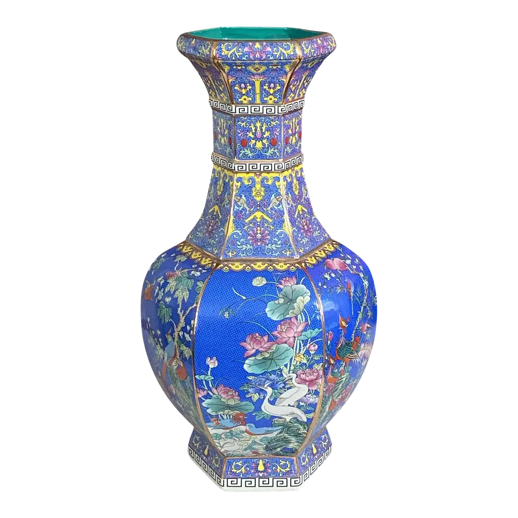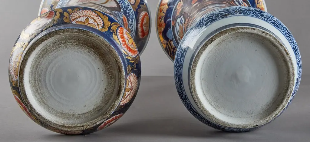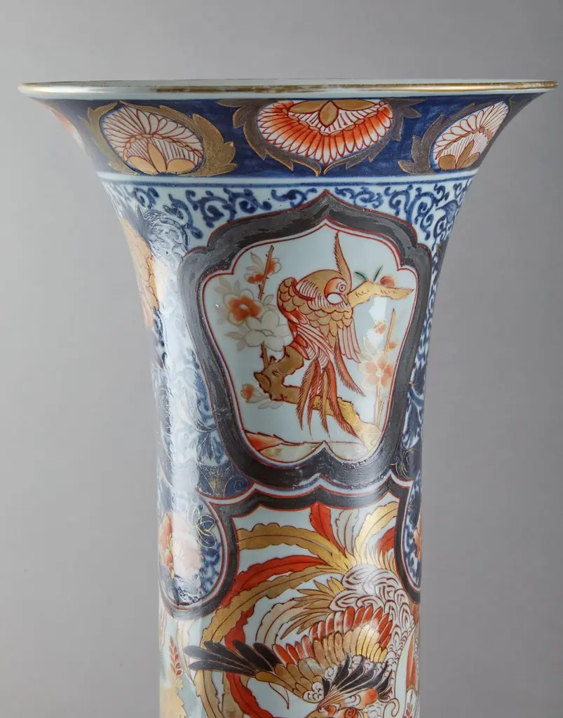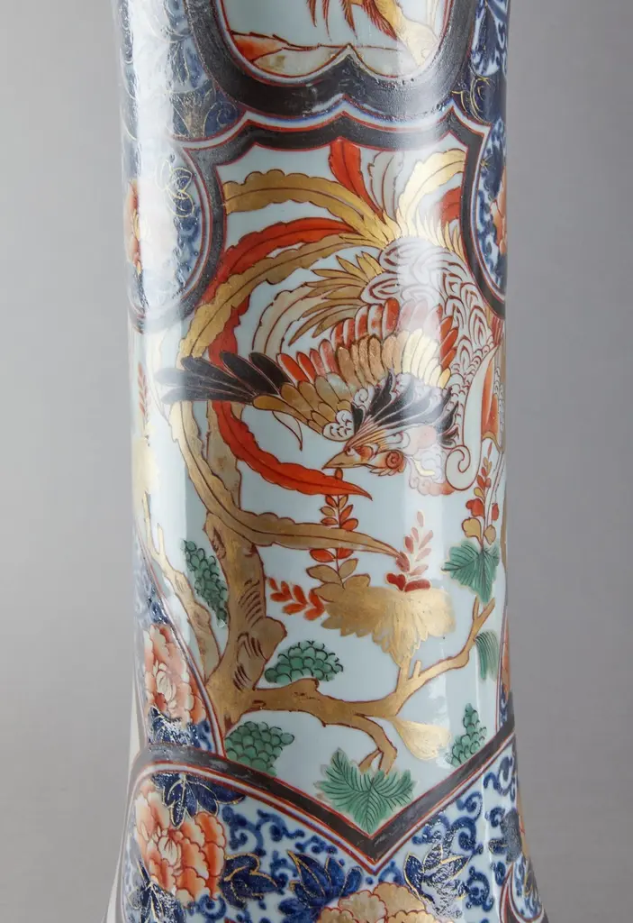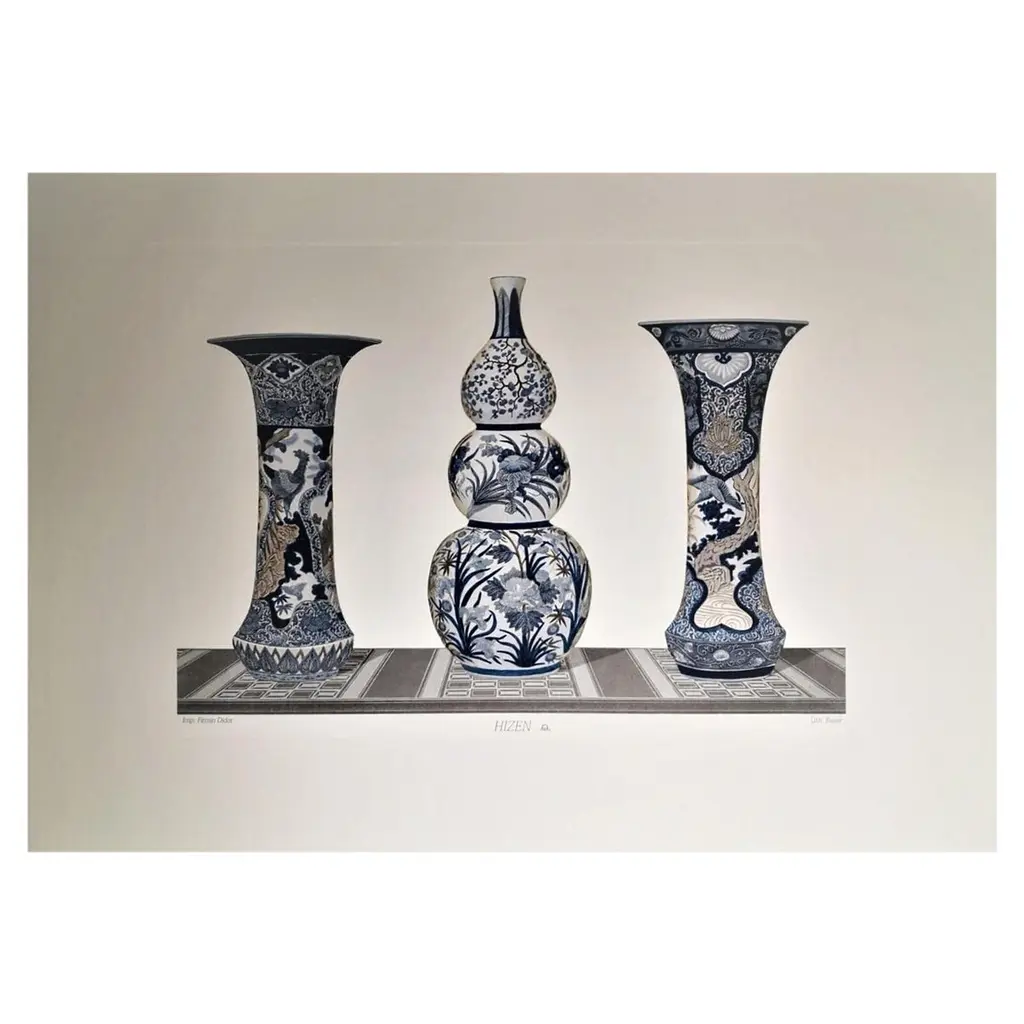 with elegantly carved wooden stand. Designs featuring floral patterns and birds.