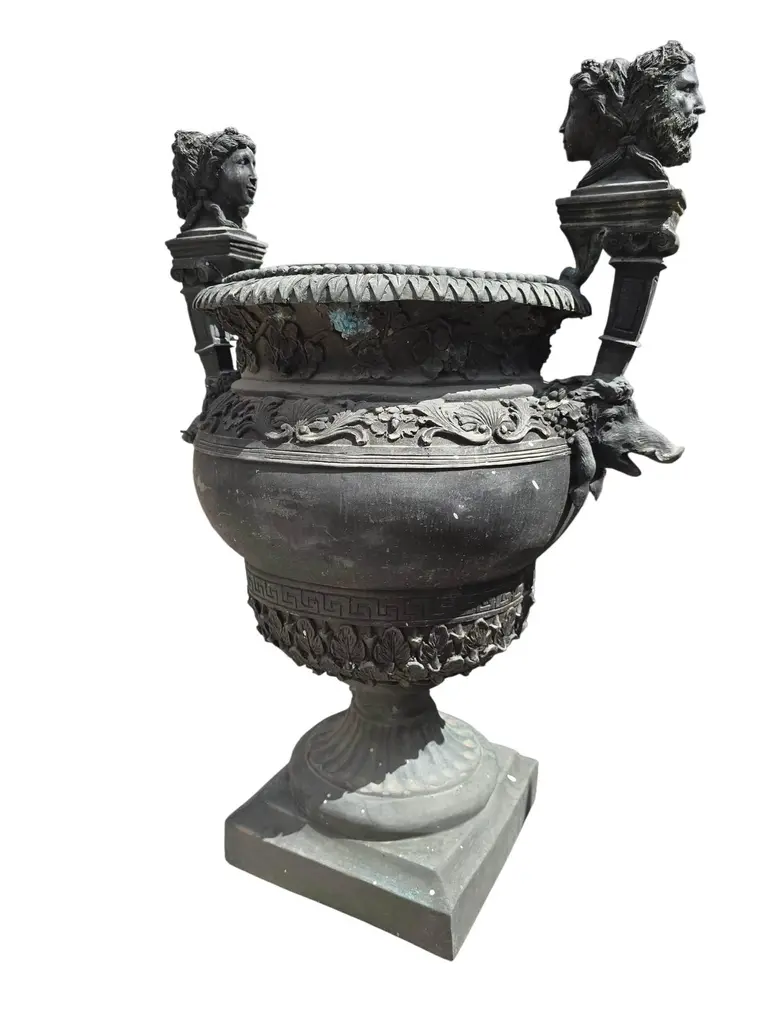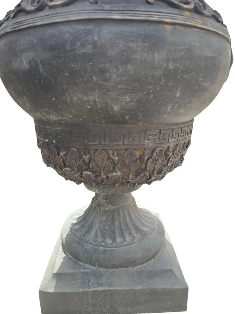 Pair Of Monumental Hand-Chiseled Bronze Palace Urns, 20th Century