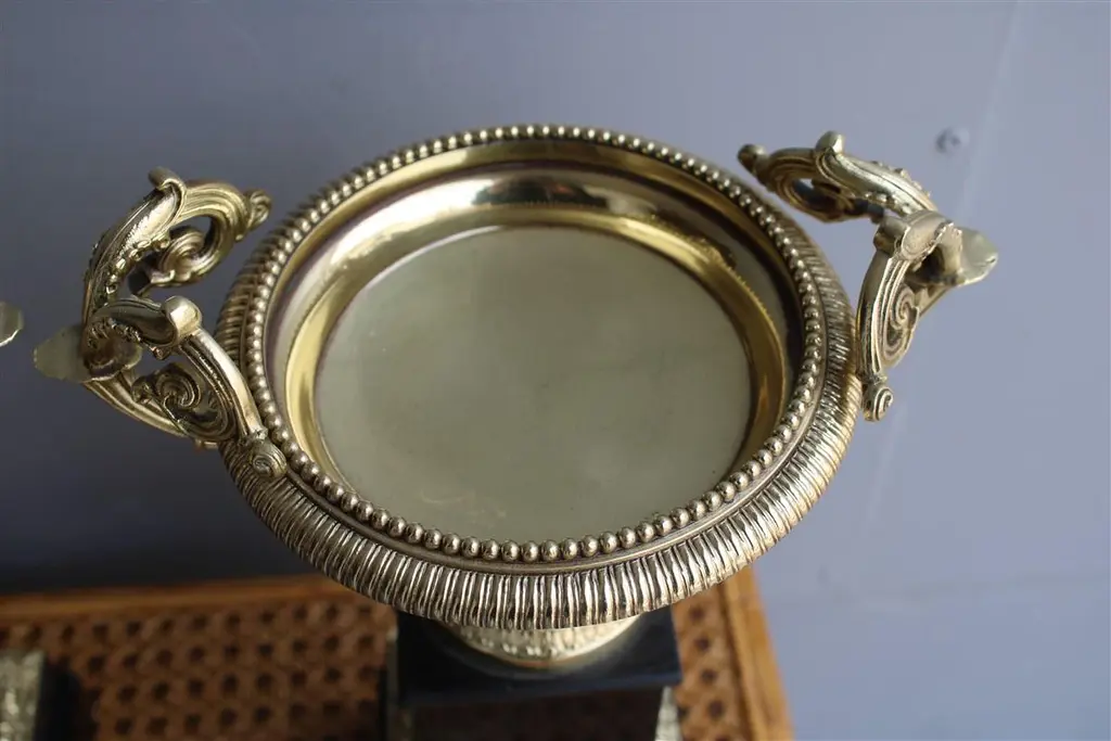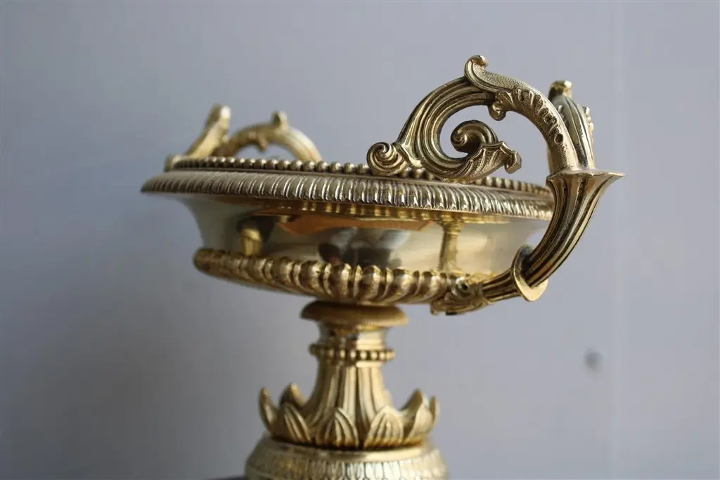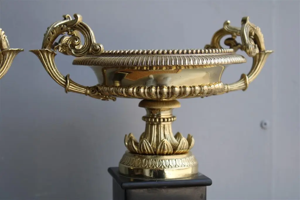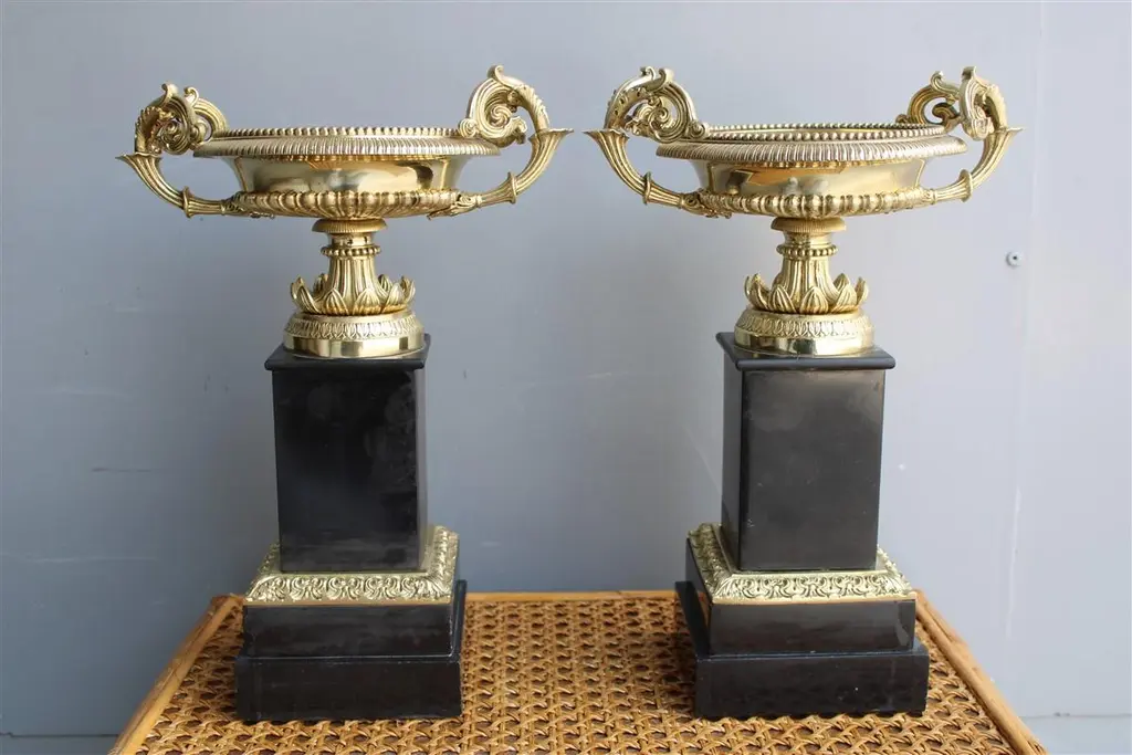 Pair of vases in black marble and parts in polished brass Napoleon III FranceBase cm.12x12.