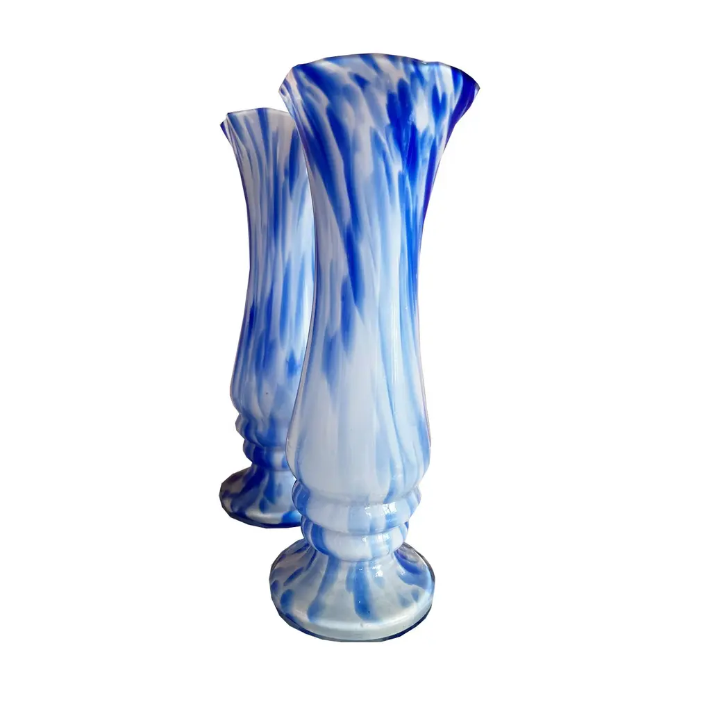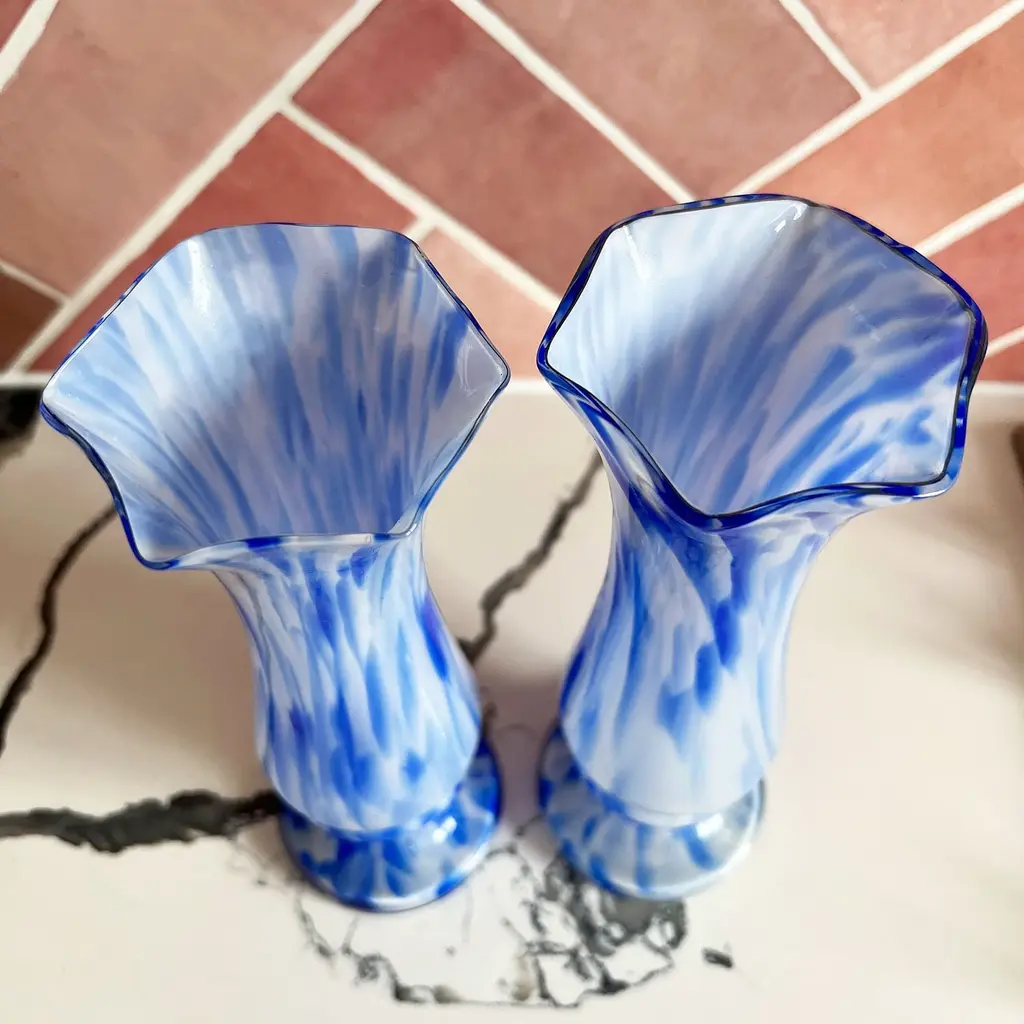 Pair Of Vintage Pop Art Glass Vases - Blue