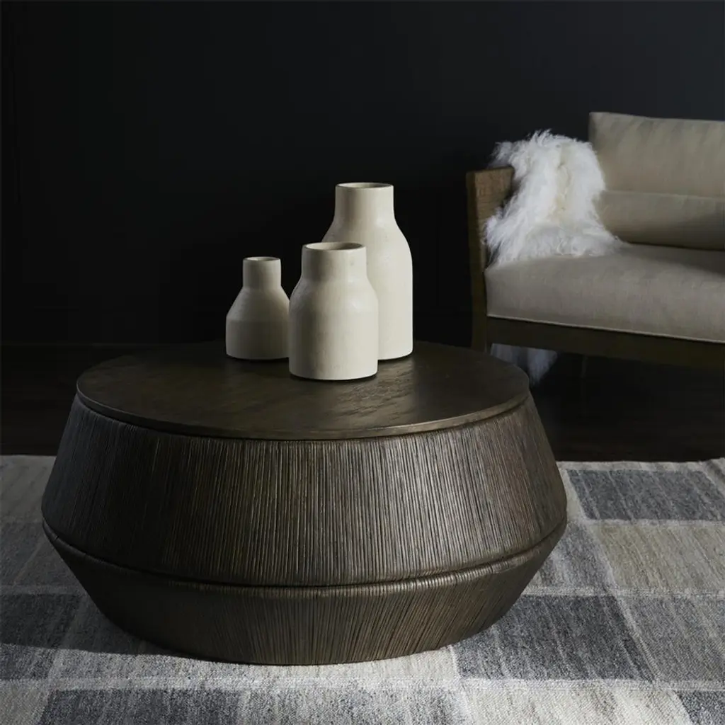 Palecek Nova Modern Classic Cylinder Crushed White Limestone Urn - Set Of 2