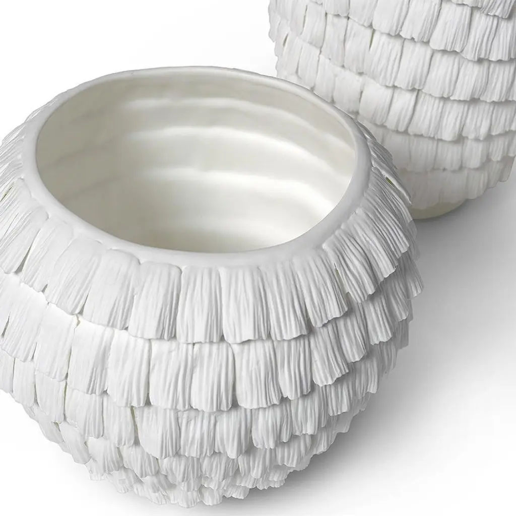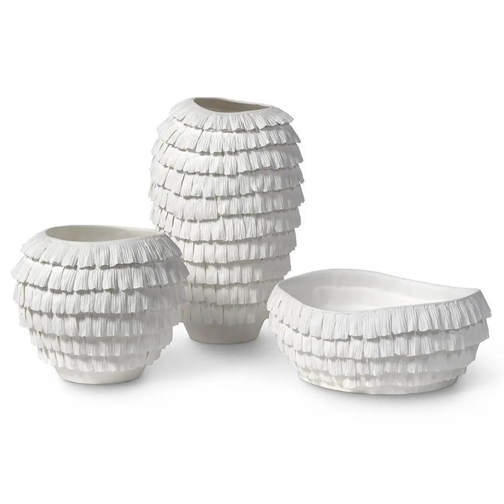 Palecek Vivian French Country White Porcelain Ruffled Decorative Vase - Short