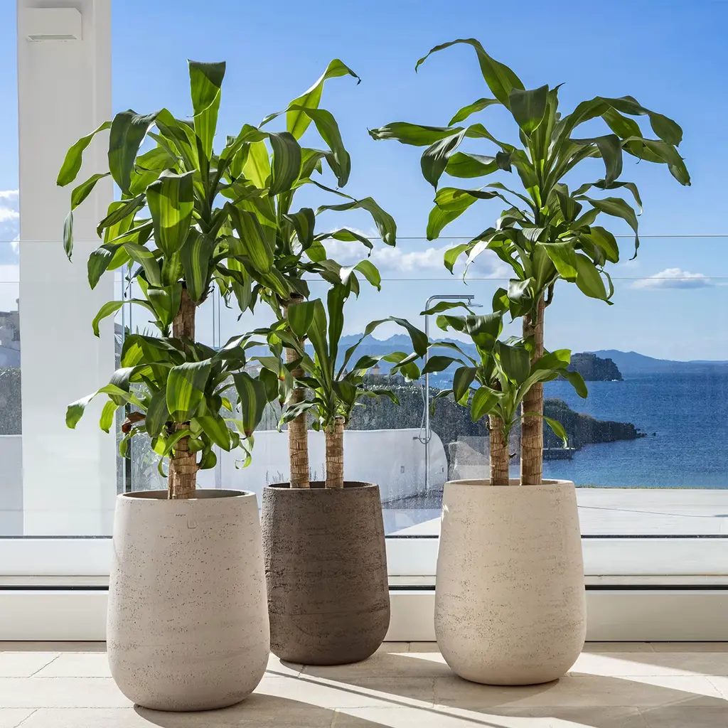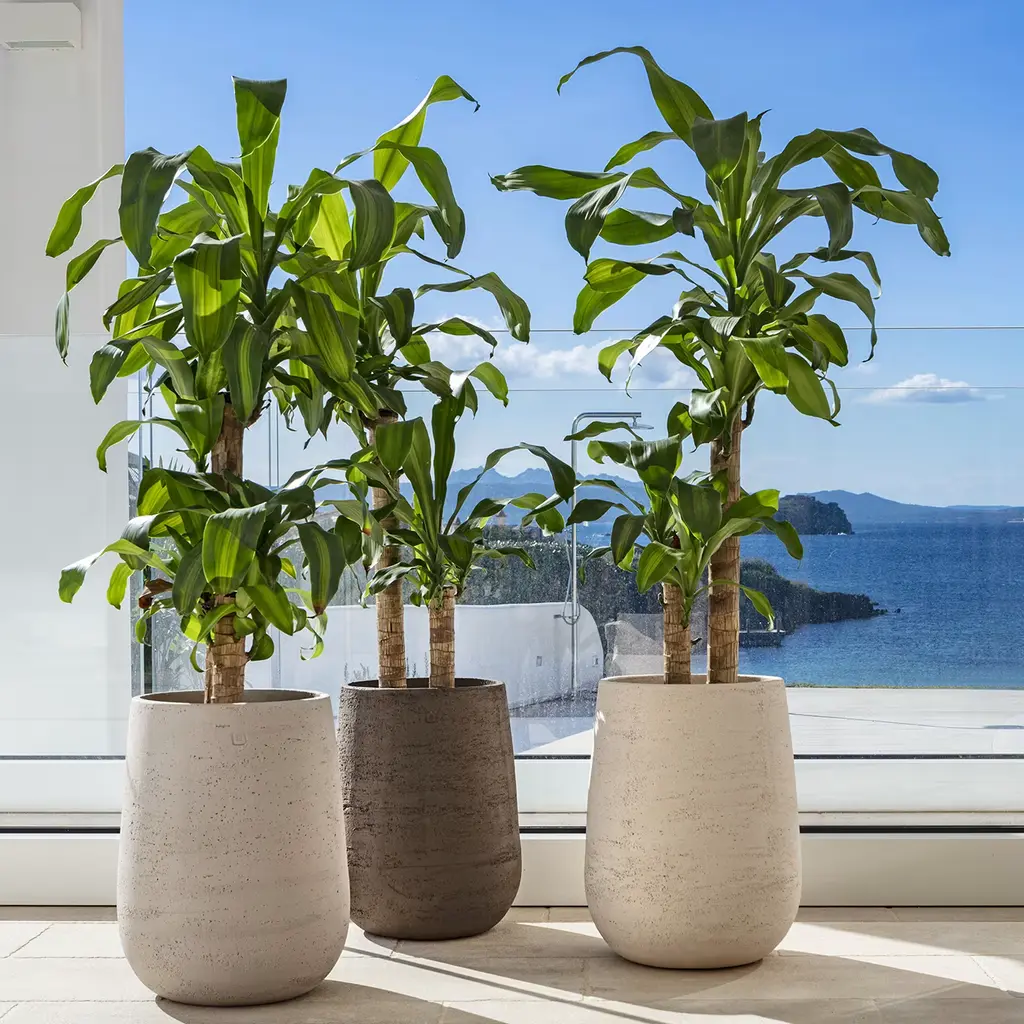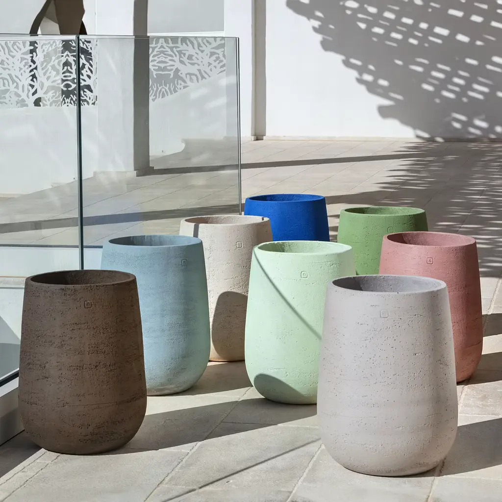 Panarea is a collection of handmade vases made of natural clay. It is available in different sizes and colors: brown, gray, pink, blue and white. It is UV-resistant, and its high firing temperature makes it impact-resistant.