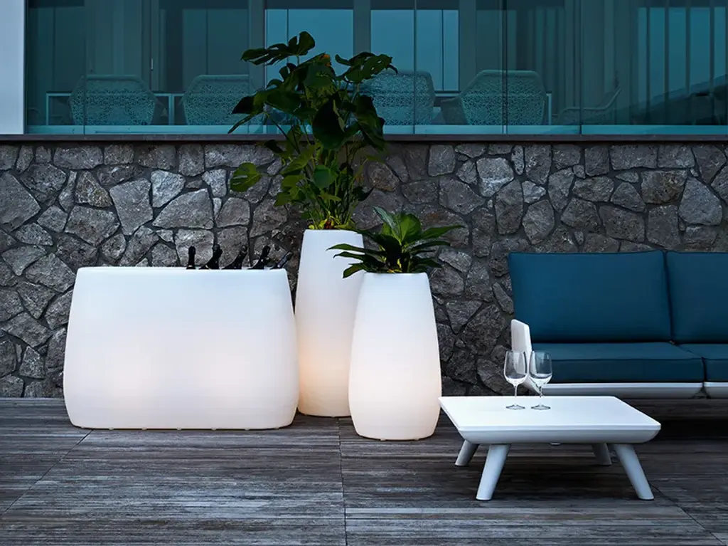 Simple shapes characterized by the PANDORA texture give life to this elegant set of pots, usable either individually or as a triptych, or in group like space separators. If lighted, PANDORA pots live by the reverberation of their minimal texture, giving a touch of style to any location.It’s the nature inspiring the shapes of PANDORA, that live in the echoes of their minimal texture. Ethereal entities that thanks to the numerous chromatic combinations and finishing compose a set of informal chairs and tables.