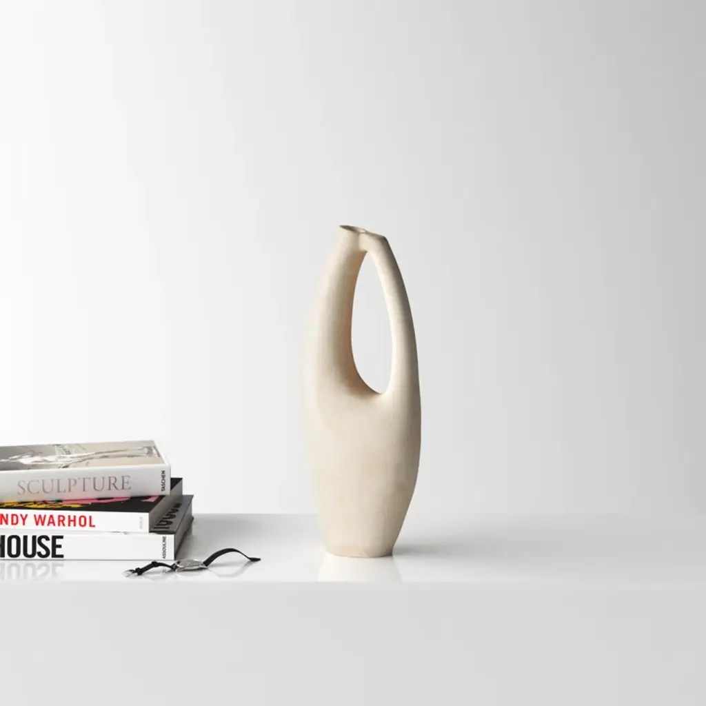 Paper Mache Abstract Curved Decorative Vase With Handle