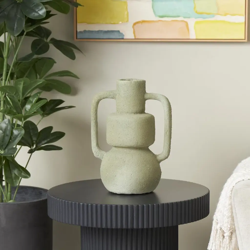 Paper Mache Abstract Textured Decorative Vase With Squared Handles