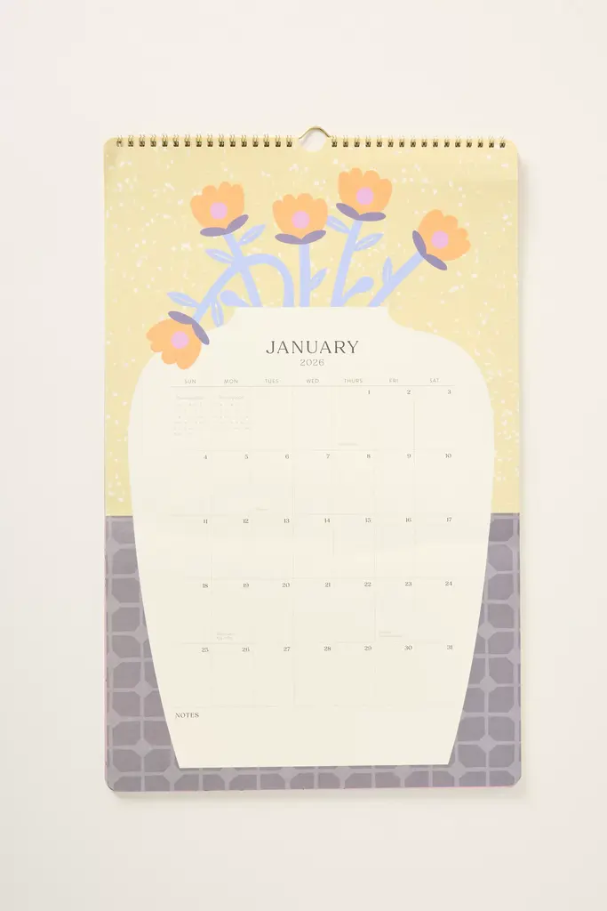 Paper Source 2025-2026 Flower Vase Tall Wall Calendar