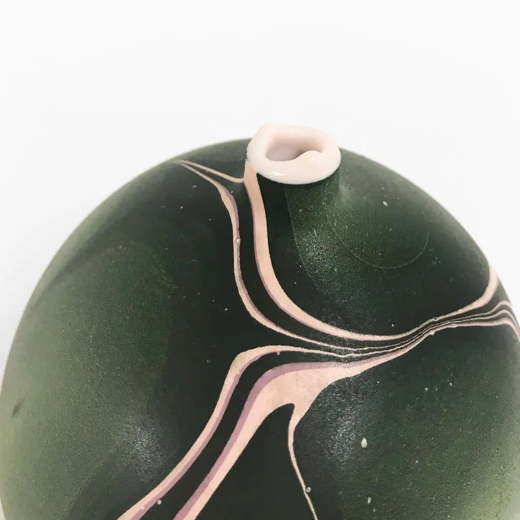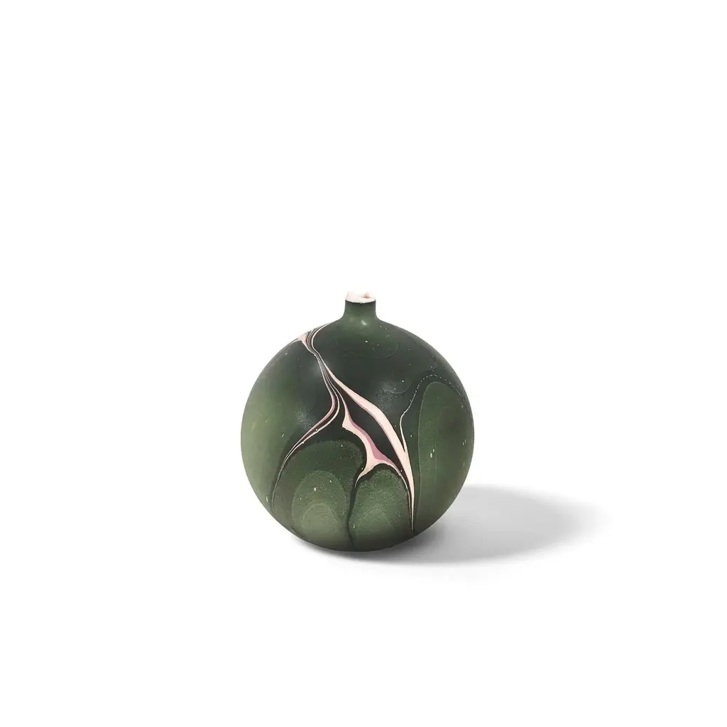 Paru small hydro vase by Elyse GrahamDimensions: W 13 x D 13 x H 14 cmMaterials: Plaster, ResinMOLDED, DYED, AND FINISHED BY HAND IN LA. CUSTOMIZATIONAVAILABLE.ALL PIECES ARE MADE TO ORDEROur new Hydro Vases take on a futuristic appearance as the signature saturated veining runs across a new muted background. With this new palette we began to imagine the possibility of otherworldly landscapes and waterways as seen from above. Inspired by the bold colors of our Hydro Collection and the muted tones of our Landscape Collection we have named all of our new Hydro Vases after the many moons of Saturn. Each vessel is hand-cast with hydrocal plaster inside of a unique balloon shape. The interior of each piece is poured with layers of resin, making it waterproof. We have developed a unique process for pigmenting the exterior of the vases that is based on the technique used for marbling paper. Each vessel is sealed with a UV resistant acrylic coating.Much like the satellites that inspire them, the pattern on each piece is unique.MEET OUR TEAMElyse Graham is the founder and creative director of the studio. Driven by Elyse’s unique vision of building a studio that fosters and emphasizes connection, play, and experimentation (of people, processes, and in turn the objects created and shared) our small team works closely and collaboratively on each project. Elyse received a BA in sculpture and semiotics at Brown University. After years of making sculpture and running a business in jewelry design, Elyse decided to merge her separate practices and redirect her attention toward collectible design in 2013. The creative trajectory of the studio is heavily influenced by Graham’s background in fine art, specifically her interest in process-driven and material-based artwork. The studio’s vocabulary of shapes, patterns, and forms comes from a lineage of unconventional processes Graham has developed and built for working with plaster and resin. Graham shares her studio as well as her home with her husband, Lewis Mauk and their daughter, Eero. Miller Robinson is head of our production department. From pigmenting and casting materials for all of our products in plaster and resin to graphic and production design, they wear many hats in our studio. Miller joined our team in 2014 and has been an integral part of designing many of our experimental processes that have lead to the creation of our unique MetaMATERIAL. Like Elyse, Miller has a background in material and process-oriented making, which led to an instant connection and collaborative understanding between the two. Miller received their BFA from Otis College of Art and Design with a focus on painting, installation, performance, and writing. Their individual art practice focuses on the preservation and potentialities of underrepresented histories and encompasses objects, garments, actions, tattooing, and books. Their personal work has been exhibited in Los Angeles at the Southwest Museum, Los Angeles Municipal Art Gallery, Heritage Square Museum, and with Los Angeles Contemporary Exhibitions (LACE), as well as HORESEANDPONY Fine Arts in Berlin.Lewis Mauk is our studio and operations engineer. Working on facilities and production design as well as engineering and leading all of our large-scale constructions and installations, Lewis’ unique set of technical skills gives form and structure to our studio’s unconventional ideas and processes. Lewis has been working behind-the-scenes since the creation of the studio but joined our team full-time in 2020. Consistent with the rest of our team, Lewis has a background in process-driven fine art and has extensive training in woodworking, printmaking, and photography. He received a MFA from CalArts and has worked across the fields of education and fabrication. Lewis’ combined interest in the creation of personal archives mixed with his commitment to sustainable life practices, has brought a focus and important emphasis on designing studio projects and processes that imagine ways to reduce and reuse studio material fragments.