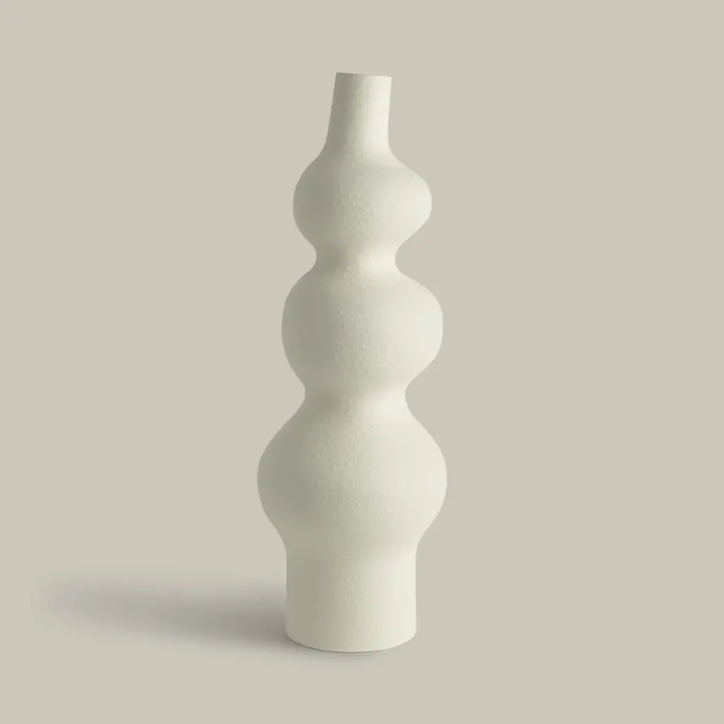The Overscale Vases in Matte White combine scale and organic form for decorative drama. Whether alone or in a grouping, these vases are the perfect graphic elements to complement any decor. Listed from left to right as shown in the image: Deoune Vase, Pasteur Vase, Fenouil Vase, Panisse Vase, and Muguet Vase.