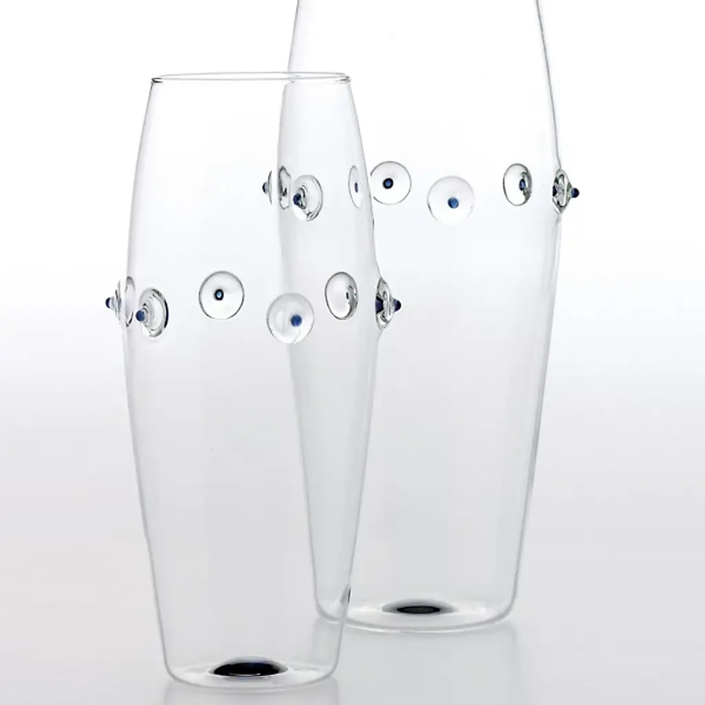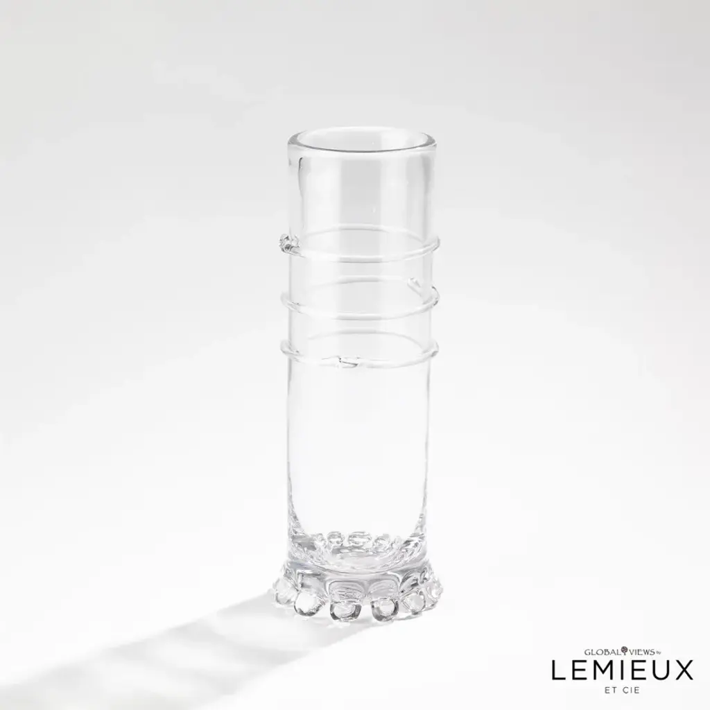The Pateo Convex Vase from Zafferano America provides a handcrafted style to any surface, adding artistic appeal to all manner of surfaces. The vase is designed by Federico De Majo and constructed from durable borosilicate glass, curving gently inward at the top and bottom, creating a graceful, balanced silhouette. Raised round accents set slightly up from the centerline add a tactile detail, making it easy to pick up and move.
