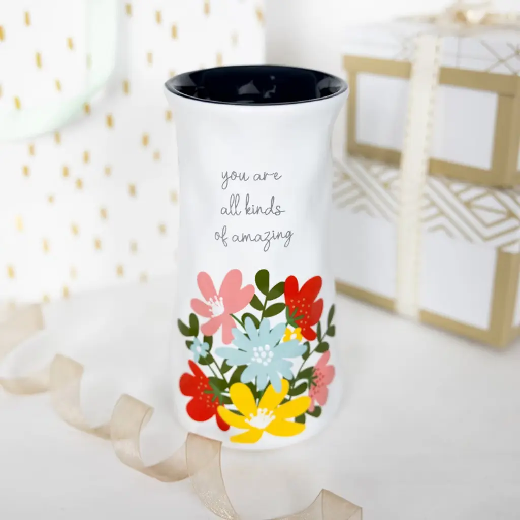 The "Amazing" Vase by Pavilion Gift Company is the perfect blend of inspiration and beauty, designed to add both color and motivation to any home decor. Standing 6.5 inches tall, this ceramic vase is crafted from durable stoneware and features a glossy interior with raised decal artwork.