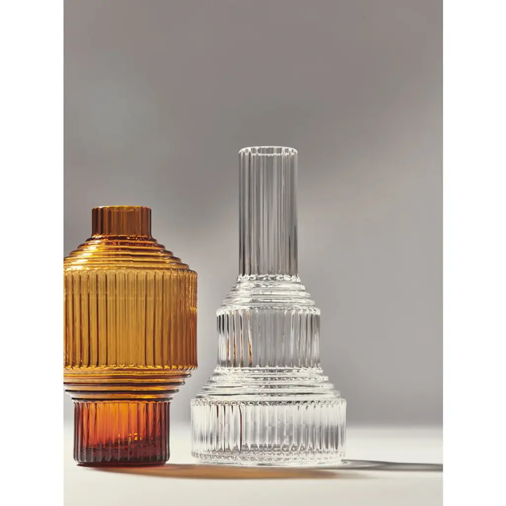 Kosta Boda's Pavilion vase celebrates the geometric interplay of vertical and horizontal ridges that give the vase its distinctive look. Designed in collaboration with the Swedish design studio Front, the Pavilion collection invites people to play and create imaginative flower arrangements. Try mixing and matching bold colors – or leave the vase empty if you wish, as the beautifully layered shape of the Pavilion vase is a delight to look at on its own!