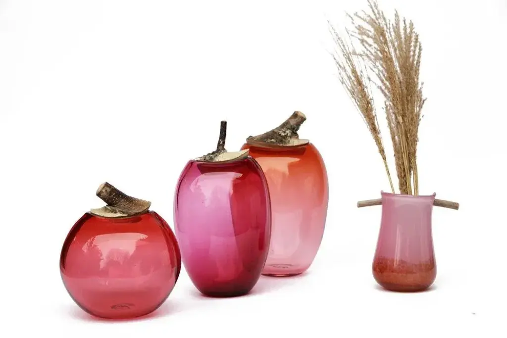 Peach branch bowl, pia wüstenberg dimensions: d 16-18 x h 20 materials: glass, wood available in other colors. A playful jar, with a lid made from a branch stub following the curvature of the glass. Branch bowls are blown without a mould: their outer rim is originally the inside of the glass bubble, thus their round and soft edges, characteristic of this artistic process. Handmade in europe: freehand blown glass (england), wood (finland). The materials then come to our warehouse in north germany where they are fitted and assembled. this piece is attributed to the mentioned designer/maker. It has no attribution mark and no official proof of authenticity, however it is well documented in design history. I take full responsibility for any authenticity issues arising from misattribution
