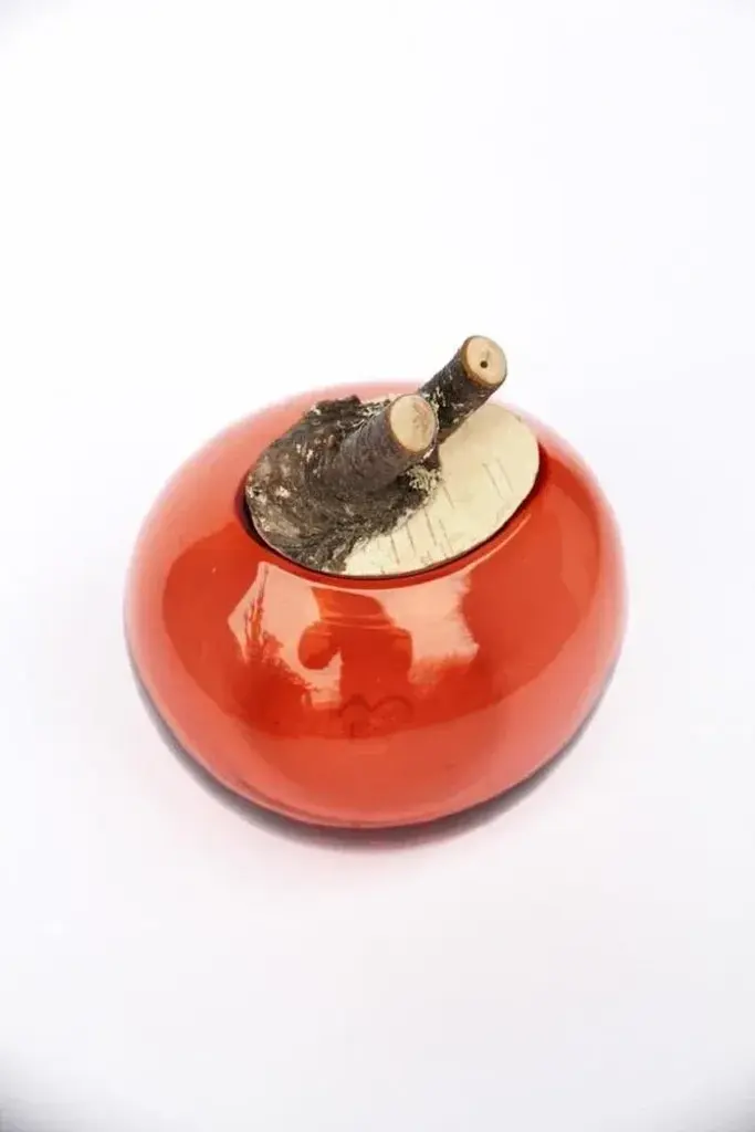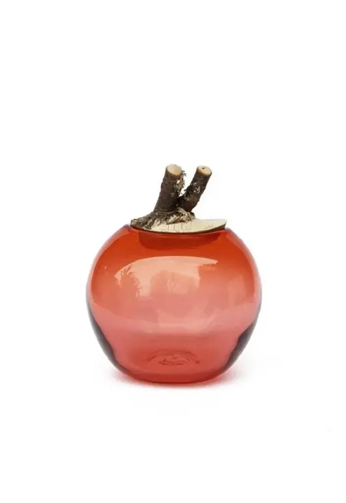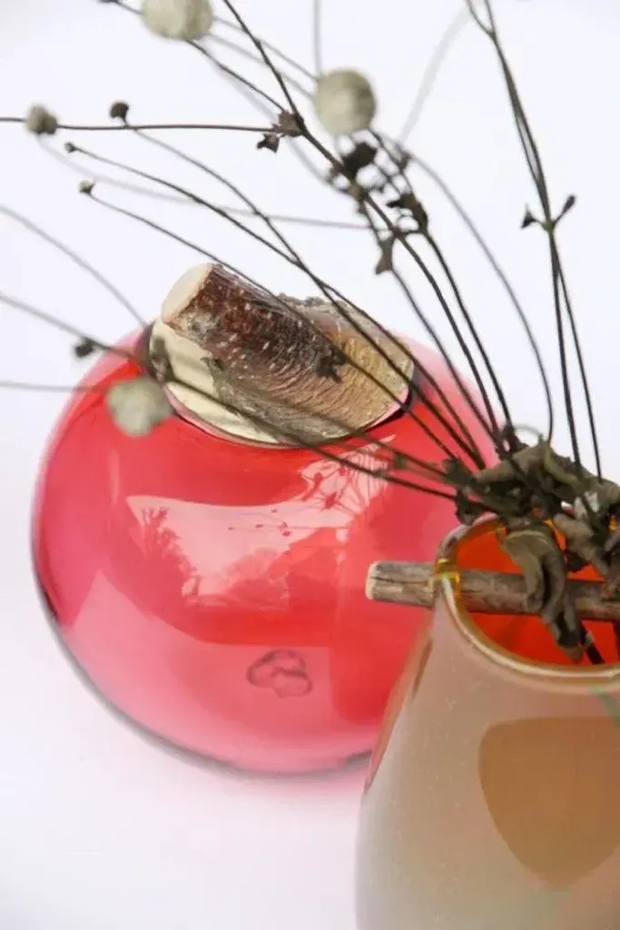 Peach double branch bowl, pia wüstenberg dimensions: d 16-18 x h 20. Materials: glass, wood. Available in other colors. A playful jar, with a lid made from a branch stub following the curvature of the glass. Branch bowls are blown without a mould: their outer rim is originally the inside of the glass bubble, thus their round and soft edges, characteristic of this artistic process. Handmade in europe: freehand blown glass (england), wood (finland). The materials then come to our warehouse in north germany where they are fitted and assembled. This piece is attributed to the mentioned designer/maker. It has no attribution mark and no official proof of authenticity, however it is well documented in design history. I take full responsibility for any authenticity issues arising from misattribution