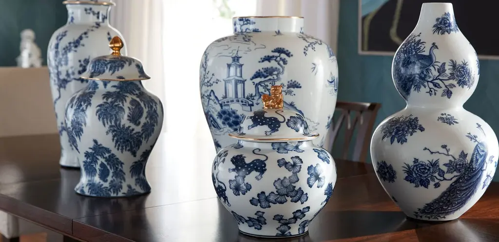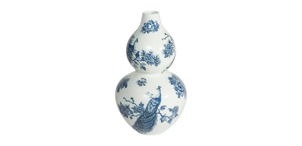 In Chinese culture, the double gourd symbolized healing; the peacock symbolized royalty. On our Peacock gourd vase, artisans use detailed brushstrokes to capture this union of the spiritual and the noble.