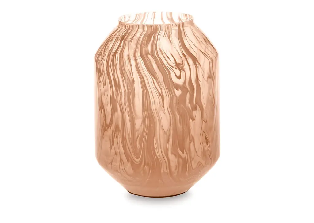 The Pegasus Vase demonstrates a gorgeous blend of opulent tones and textural depth. This rounded art glass piece displays two distinct halves, featuring a textural motif of cut glass at the top, with a silver foil coating at the bottom. The result is a stunning contrast that makes an impact within a space.