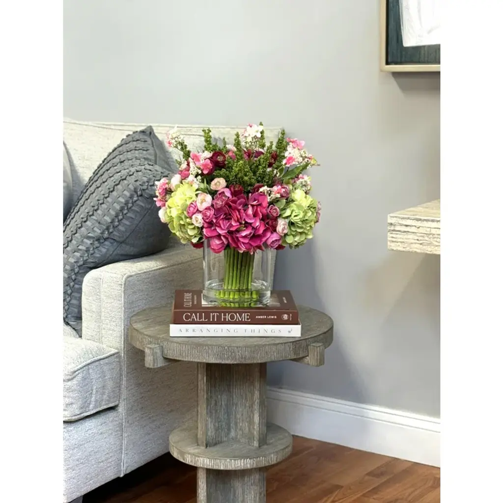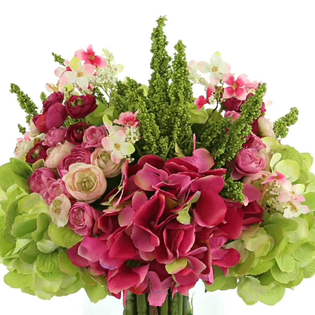 Peonies And Hydrangea Arrangement In A Glass Vase