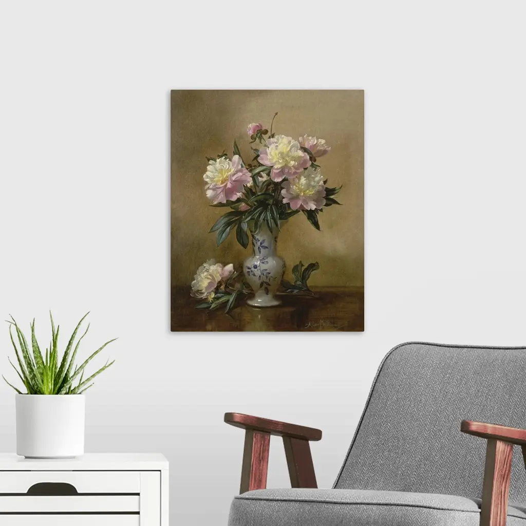 Peonies In A Blue And White Vase wall art for home and office decor. Discover canvas art prints, photos, mural, big canvas art and framed wall art in GreatBigCanvas.com's varied collections.