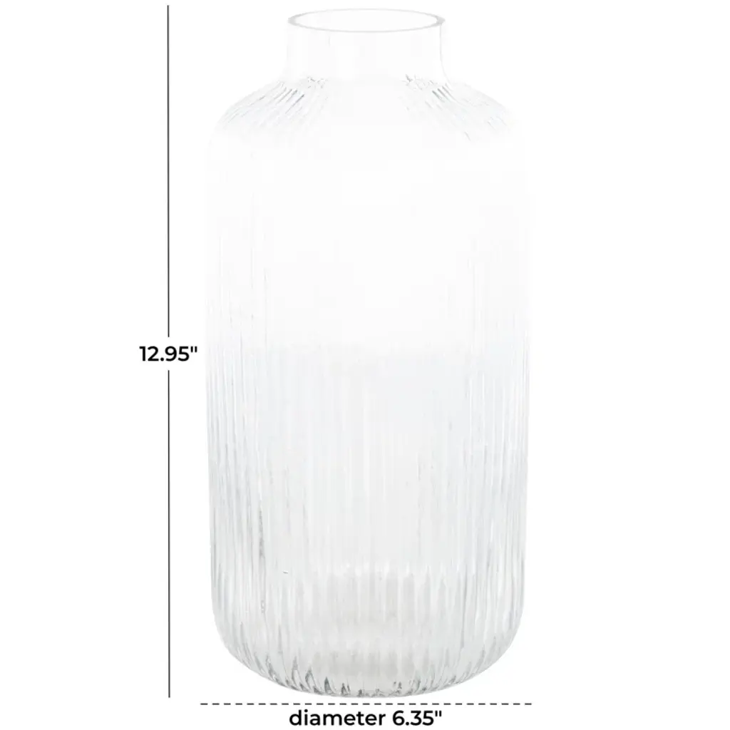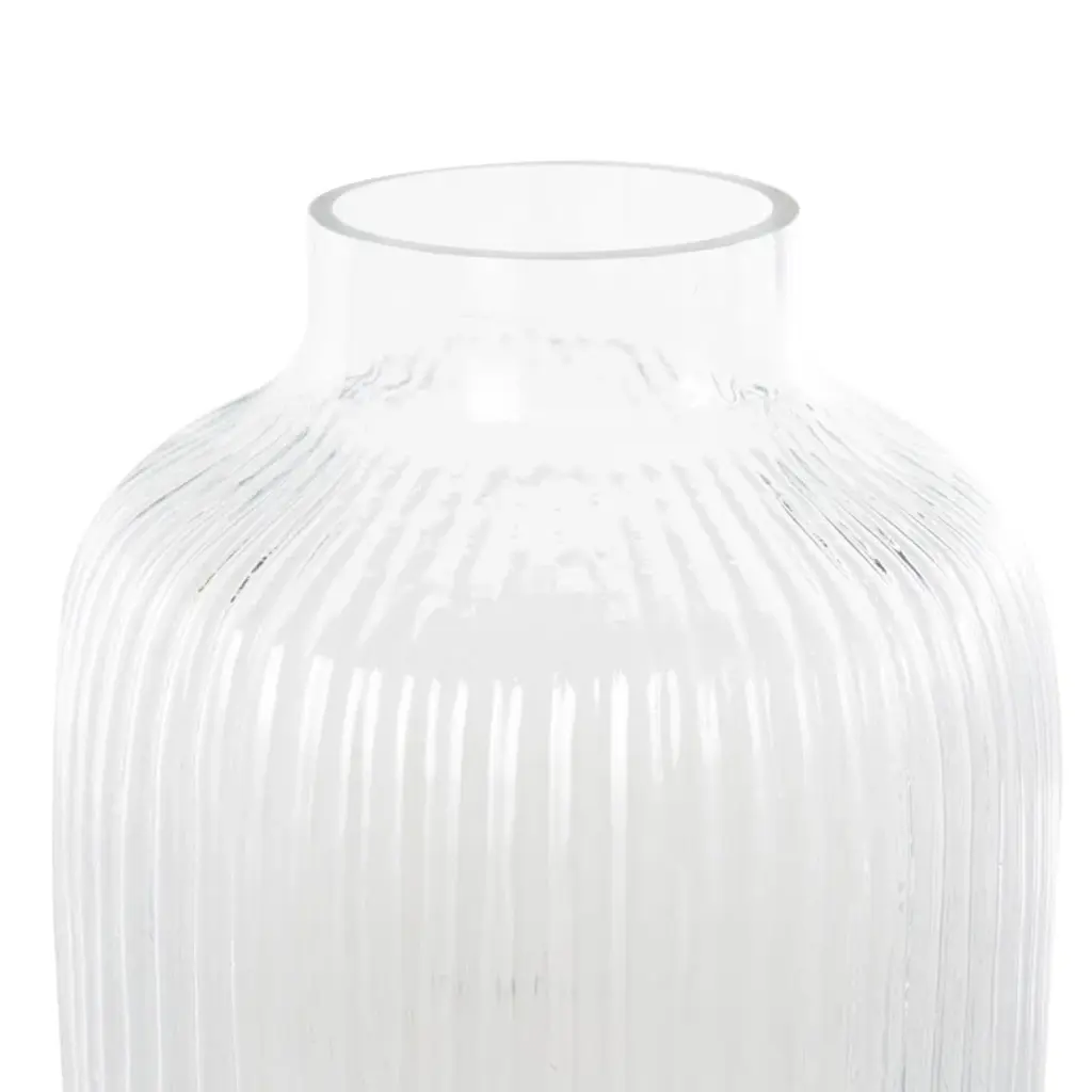 This clear centerpiece vase is perfect for enhancing the beauty of your living room coffee table or dining table, with fresh floral or greenery. Designed with felt or rubber stoppers at the base that prevent scratching furniture and table tops, as well as sliding around. Glass vase makes a great gift for any occasion. Suitable for indoor use only. Made in India. This is a single clear colored vase. Contemporary style. Vase has a 2.50 in mouth opening.