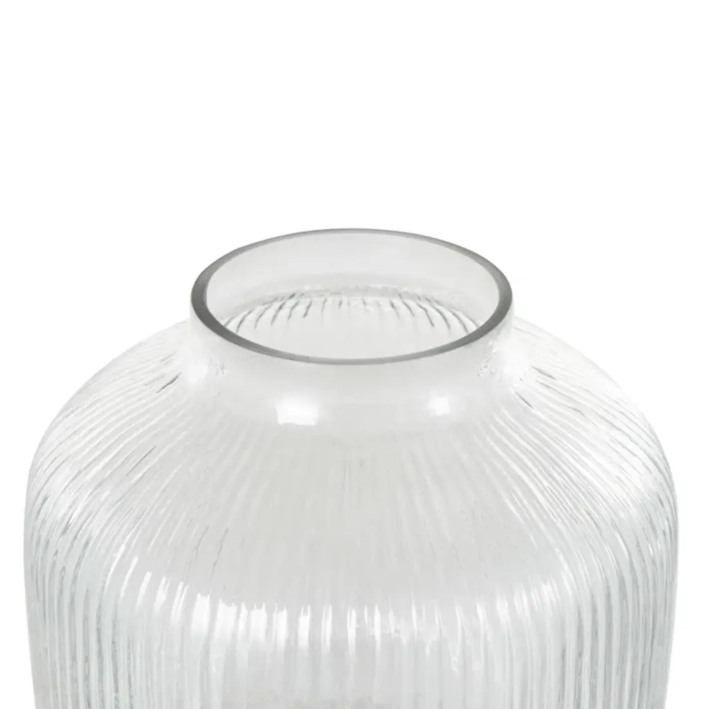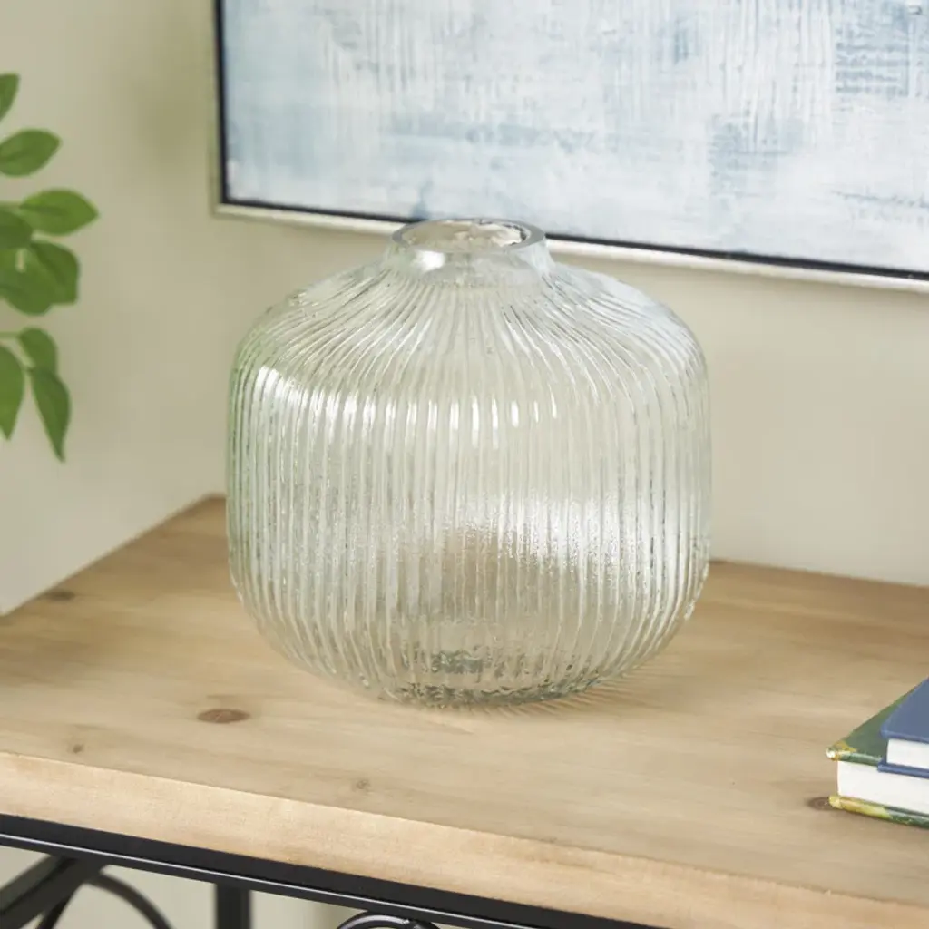 The clear centerpiece vase is perfect for enhancing the beauty of your living room coffee table or dining table, with fresh floral or greenery. Designed with felt or rubber stoppers at the base that prevent scratching furniture and table tops, as well as sliding around. Glass vase makes a great gift for any occasion. Suitable for indoor use only. Made in India. This is a single clear colored vase. Modern style. Vase has a mouth opening.