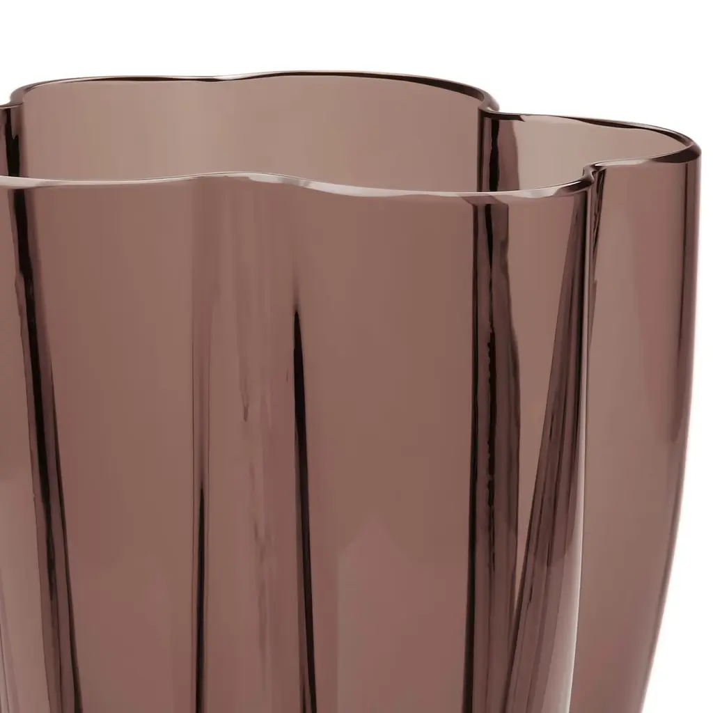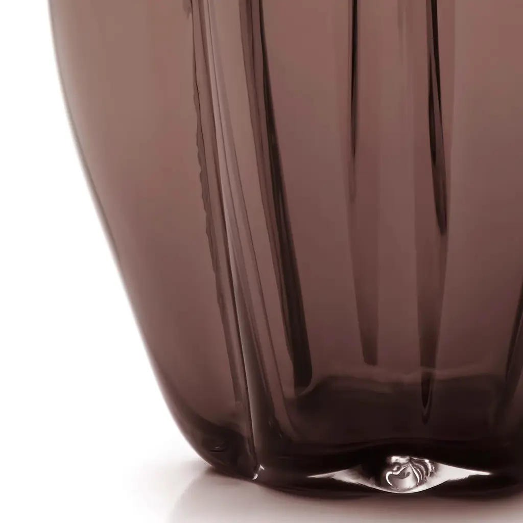 Petal is a rounded vase that, thanks to some fine metal wires, when blown creates lobed shapes that resemble petals. Designed by Alessandro Mendini, Petalo comes in two sizes, large with three leaves and small with six leaves in a polished finish to emphasize the beauty and transparency of the Murano blown glass. It is also available for customization thanks to the color variations of the color chart.