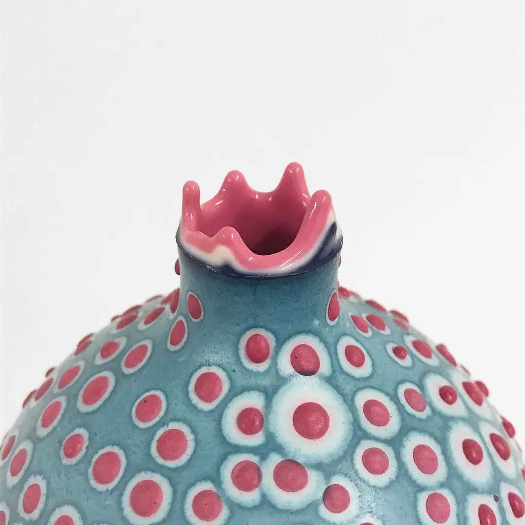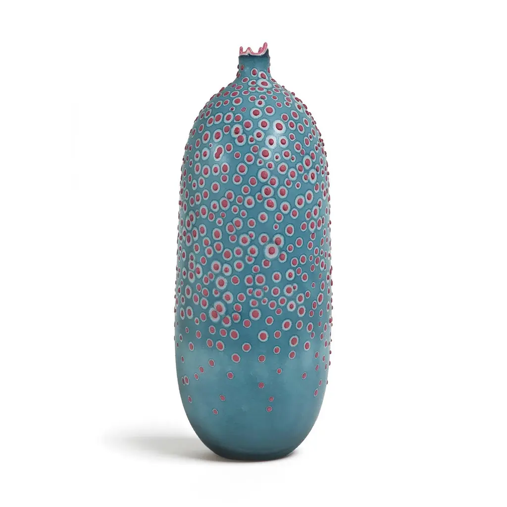 Pheasant dubos vase by Elyse GrahamDimensions: W 14 x D 14 x H 38 cmMaterials: Plaster, ResinMolded, dyed, and finished by hand in LA. customizationAvailable.All pieces are made to orderOur Microbe Collection is inspired by the unique galaxy of microorganisms living within each of us. We created a technique for dying and stippling each vase that evokes the nature of microbes as they grow and colonize . Each vase is hand-cast with hydrocal plaster inside of a unique balloon shape. The interior of each piece is poured with layers of resin, making it waterproof. Finally, each vase is hand-dyed with custom mixed pigments and finished with a unique pattern of dyed plaster protuberances. The exterior of each vase is sealed with a UV resistant acrylic coating. These vases are all handmade and will vary slightly in shape, size, color and pattern.Founded in 2014 and based in Los Angeles, the Elyse Graham Studio is a place where unusual materials and experimental processes are implemented to create a melding of art and object. We design by making—with an emphasis on capturing the unique properties of the materials we use through exploration and innovation. Each piece we make is non-repeating and completely individual. We have intentionally designed every process we use — from how we mix our colors to how we cast our forms to highlight and celebrate the time-based, made by hand quality of our work. All of our pieces require a specific kind of care and attention at every level of production. At the core of our studio is our endless fascination with inviting the unknown into our work and exploring our passion for creating pieces that tell a story— about the materials they are made of, the artists who make them and the homes they live in. Each piece is a journey, come along with us.MEET OUR TEAMElyse Graham is the founder and creative director of the studio. Driven by Elyse’s unique vision of building a studio that fosters and emphasizes connection, play, and experimentation (of people, processes, and in turn the objects created and shared) our small team works closely and collaboratively on each project. Elyse received a BA in sculpture and semiotics at Brown University. After years of making sculpture and running a business in jewelry design, Elyse decided to merge her separate practices and redirect her attention toward collectible design in 2013. The creative trajectory of the studio is heavily influenced by Graham’s background in fine art, specifically her interest in process-driven and material-based artwork. The studio’s vocabulary of shapes, patterns, and forms comes from a lineage of unconventional processes Graham has developed and built for working with plaster and resin. Graham shares her studio as well as her home with her husband, Lewis Mauk and their daughter, Eero. Miller Robinson is head of our production department. From pigmenting and casting materials for all of our products in plaster and resin to graphic and production design, they wear many hats in our studio. Miller joined our team in 2014 and has been an integral part of designing many of our experimental processes that have lead to the creation of our unique MetaMATERIAL. Like Elyse, Miller has a background in material and process-oriented making, which led to an instant connection and collaborative understanding between the two. Miller received their BFA from Otis College of Art and Design with a focus on painting, installation, performance, and writing. Their individual art practice focuses on the preservation and potentialities of underrepresented histories and encompasses objects, garments, actions, tattooing, and books. Their personal work has been exhibited in Los Angeles at the Southwest Museum, Los Angeles Municipal Art Gallery, Heritage Square Museum, and with Los Angeles Contemporary Exhibitions (LACE), as well as HORESEANDPONY Fine Arts in Berlin.Lewis Mauk is our studio and operations engineer. Working on facilities and production design as well as engineering and leading all of our large-scale constructions and installations, Lewis’ unique set of technical skills gives form and structure to our studio’s unconventional ideas and processes. Lewis has been working behind-the-scenes since the creation of the studio but joined our team full-time in 2020. Consistent with the rest of our team, Lewis has a background in process-driven fine art and has extensive training in woodworking, printmaking, and photography. He received a MFA from CalArts and has worked across the fields of education and fabrication. Lewis’ combined interest in the creation of personal archives mixed with his commitment to sustainable life practices, has brought a focus and important emphasis on designing studio projects and processes that imagine ways to reduce and reuse studio material fragments.