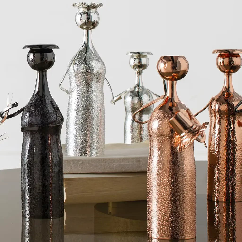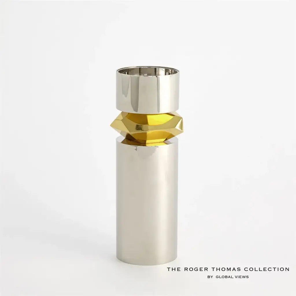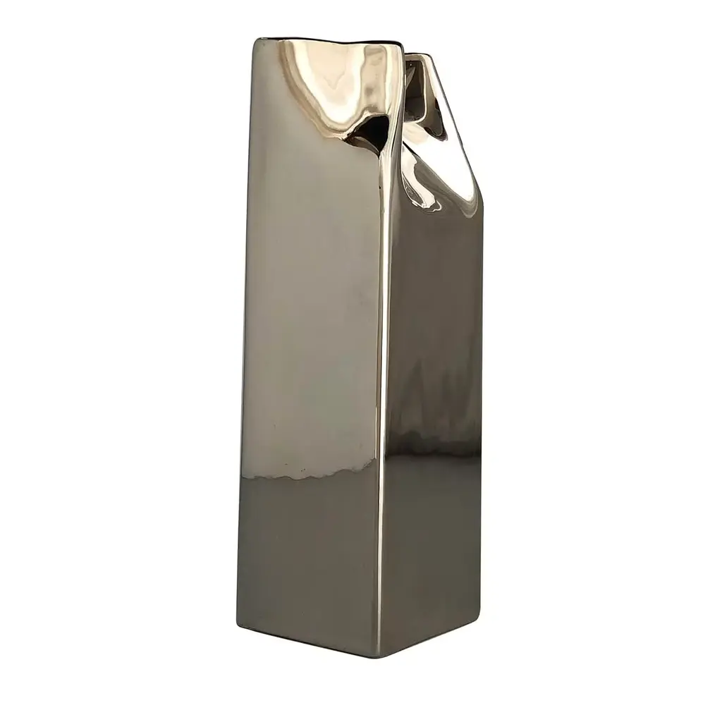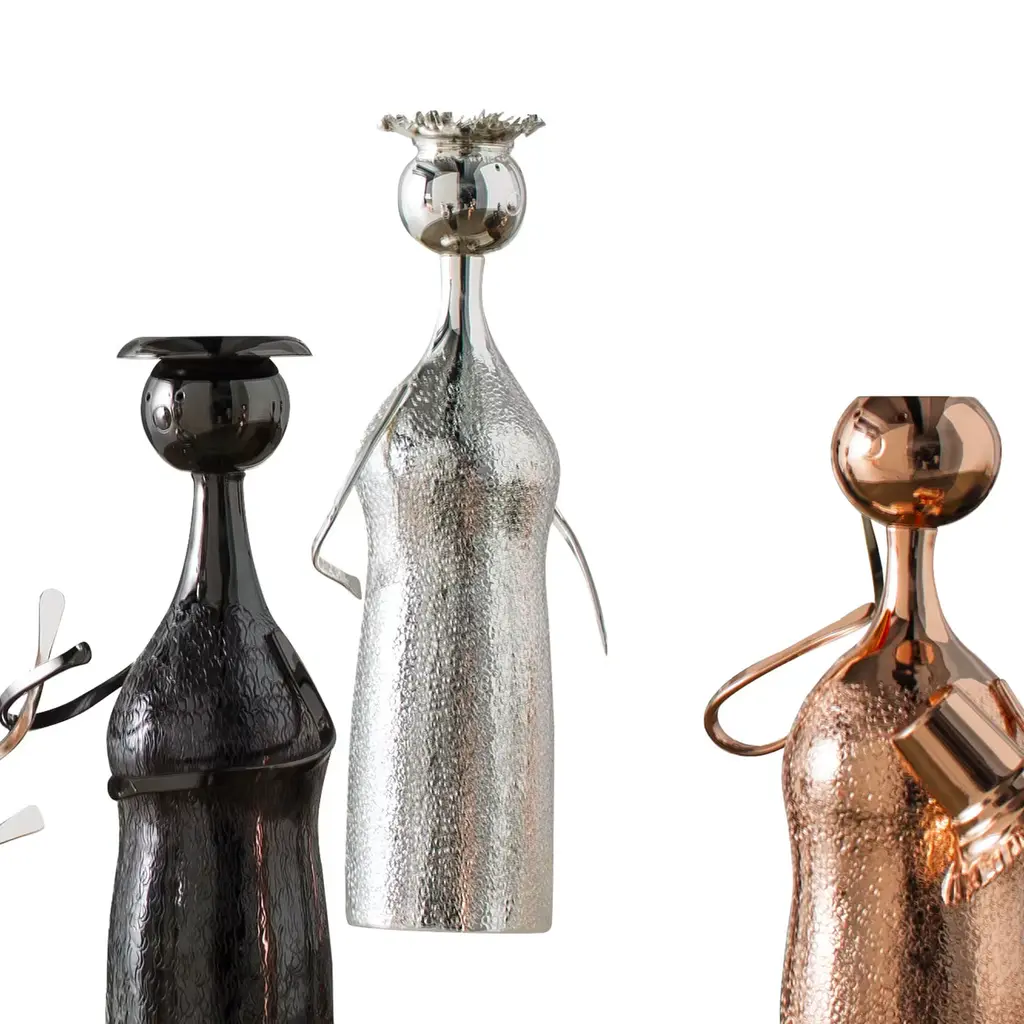 This exquisite vase takes its name from the playful and elegant shape: it is reminiscent of a small man with a hat (piccolo uomo con cappello in Italian). Made of silver with a partly shiny and bark texture, it may function as vase or candlestick. This piece is a sculptural work of art that will add an accent of luxury to any interior. The man's hat can be used as a candle-holder, while, if removed, this unique sculpture becomes a vase.