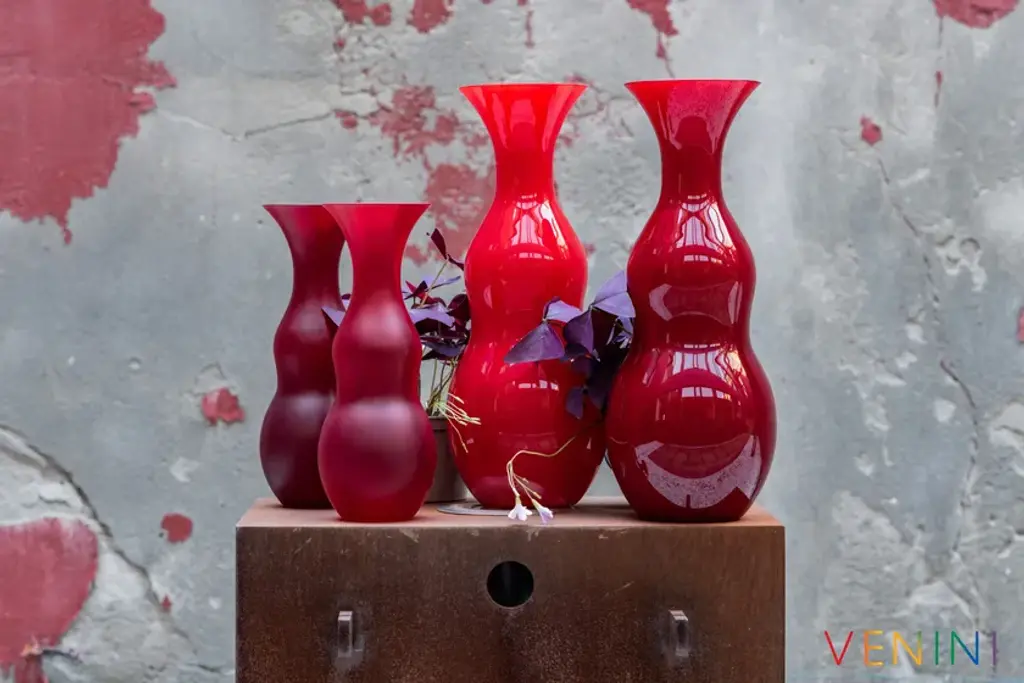 Pigmenti is a vase made of blown glass available in 2 finishes: satin and opal in different colors.With the PIGMENTI collection, Venini aims to send out a sign of renewal through the development of a classic form as the expression of a contemporary interior design accessory. PIGMENT is proposed in a rich colour palette and is created in two sizes.Colors and finishes:glazed AMBERglazed REDglazed OX BLOOD REDglazed AMETHYSTglazed GRAPEopaline AMBERopaline REDopaline OX BLOOD REDopaline AMETHYSTopaline GRAPE